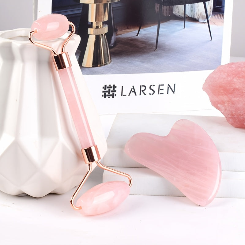 Pink Heart-Shaped Facial Roller and Gua Sha Set for Face and Eye Relaxation