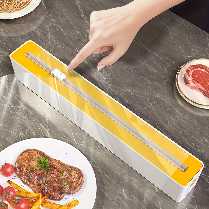 Plastic Wrap Dispenser with Reusable Fresh Wrap Machine for Kitchen Drawer Storage