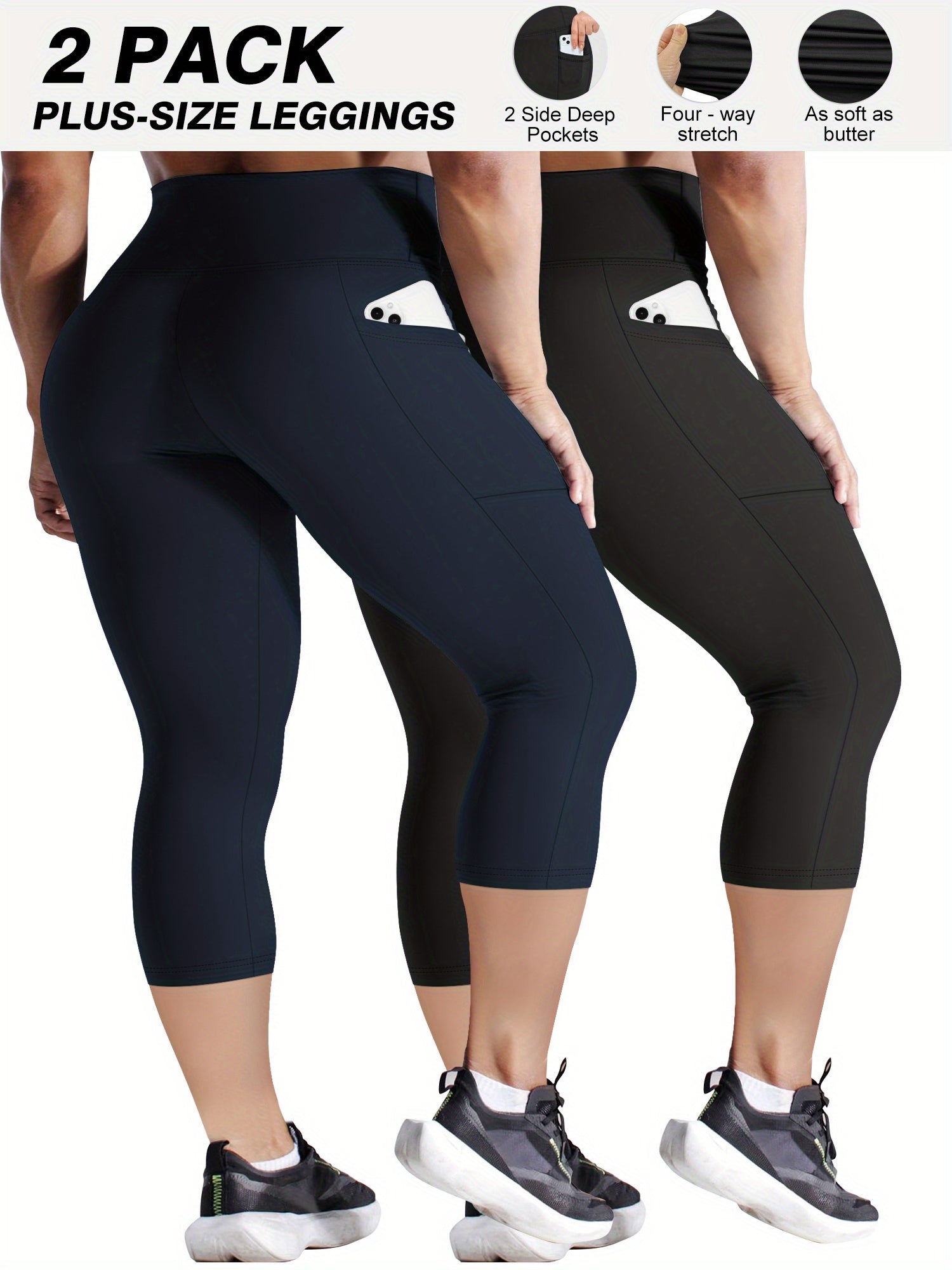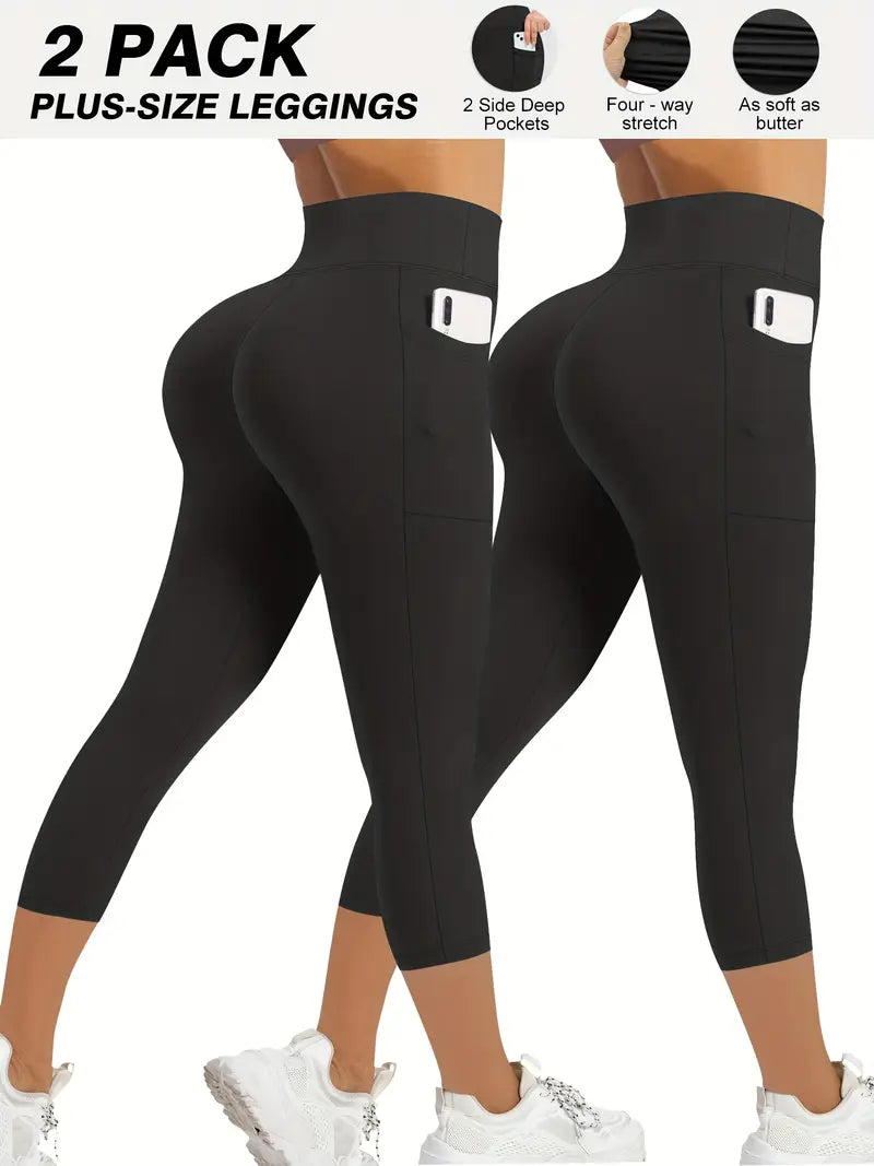 Plus Size 2-Pack High-Waisted Pocket Pants Beige Fitness Outdoor Comfortable