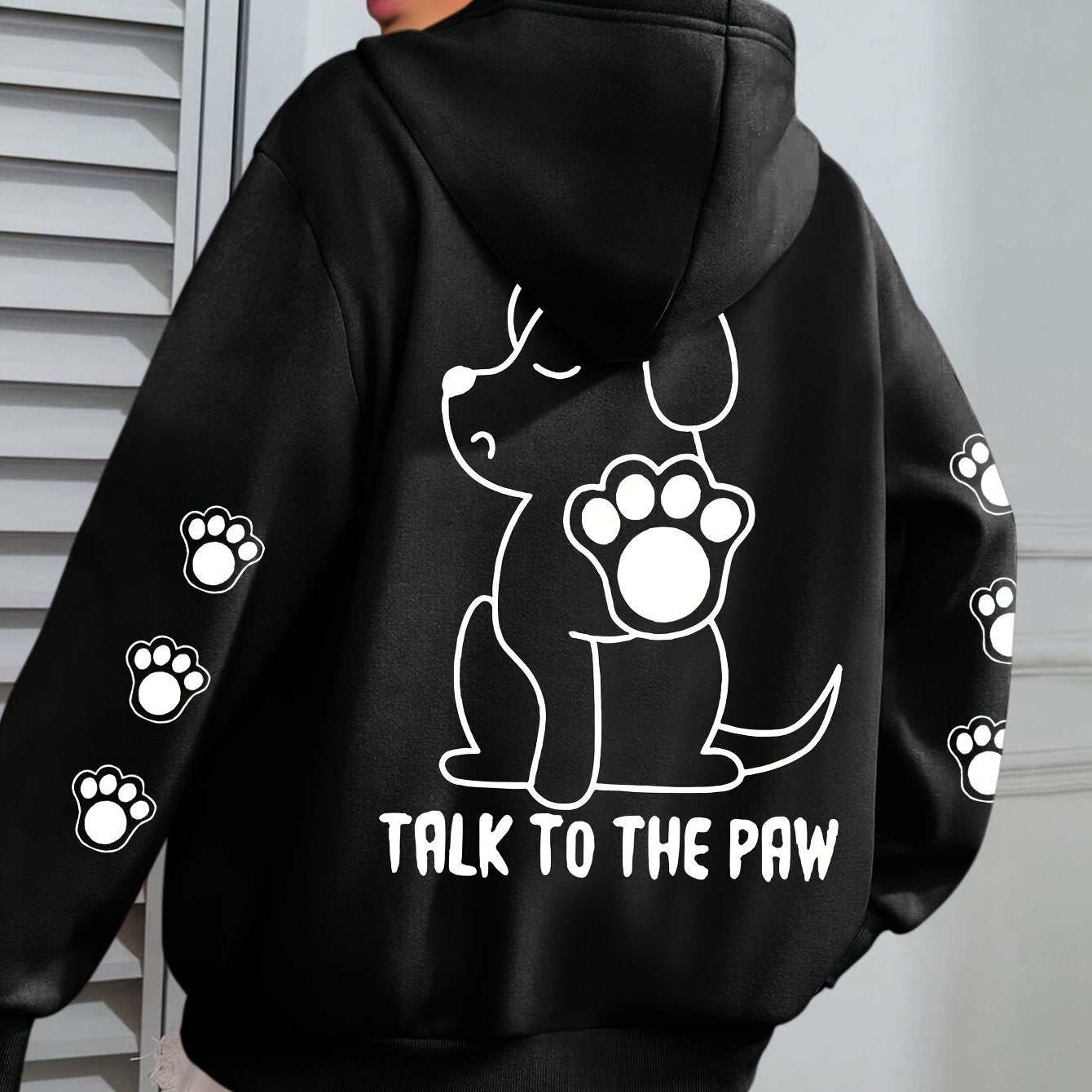 Plus Size Beige Hoodie with Dog "Talk to the Paw" Design Casual Pullover