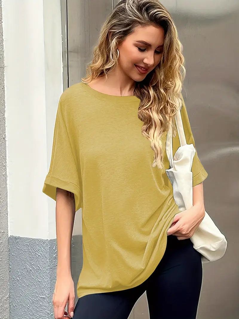 Plus Size Black Loose Fit Women'S T-Shirt Casual Short Sleeve Top