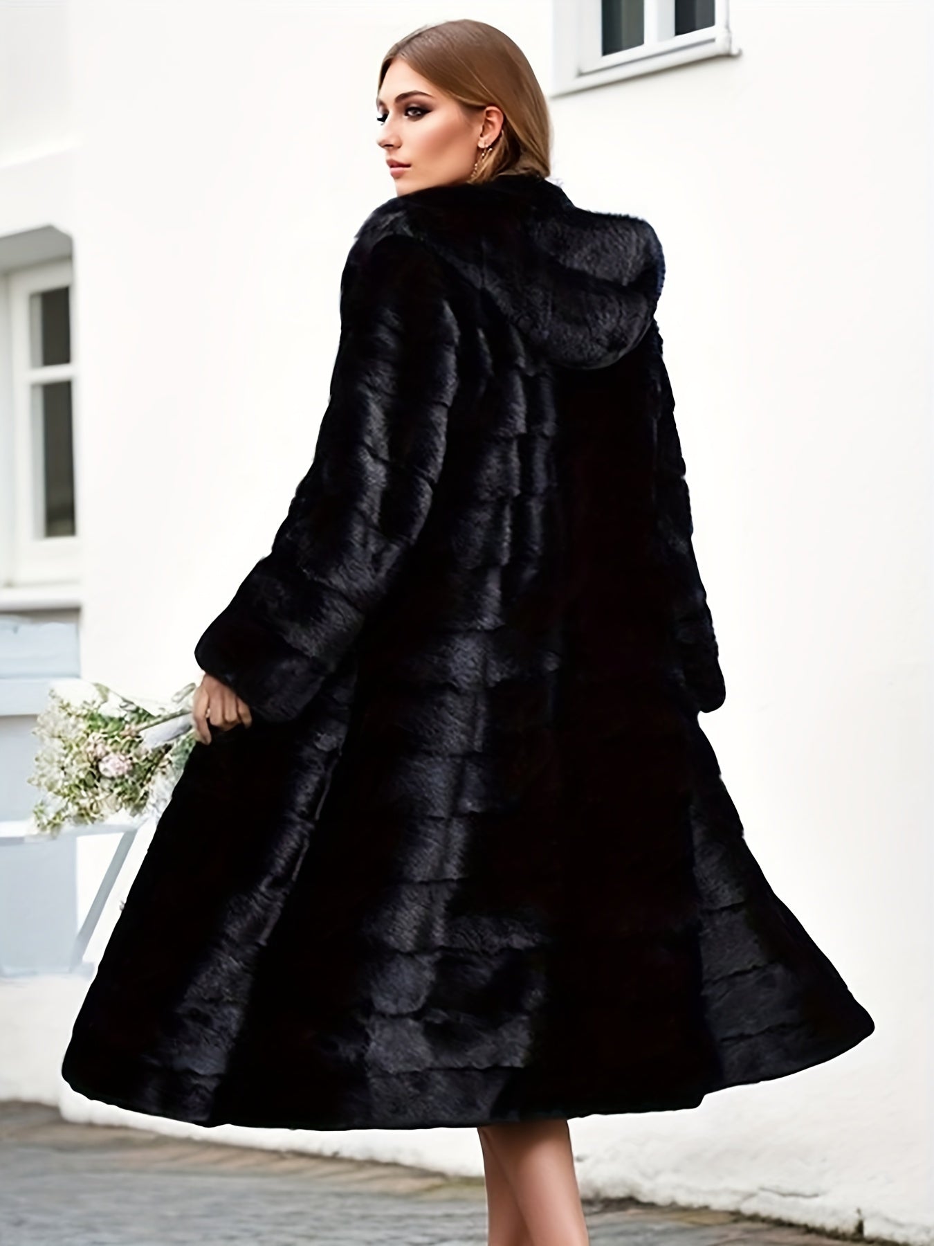Plus Size Faux Fur Coat with Pockets and Hood for Winter