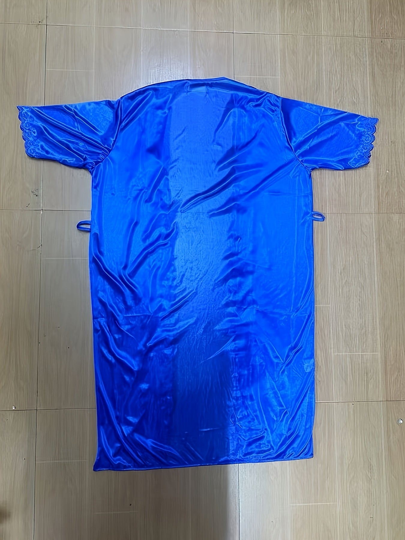 Plus Size Lace Nightgown and Robe Set for Summer Short Sleeve Semi-Sheer Solid Polyester