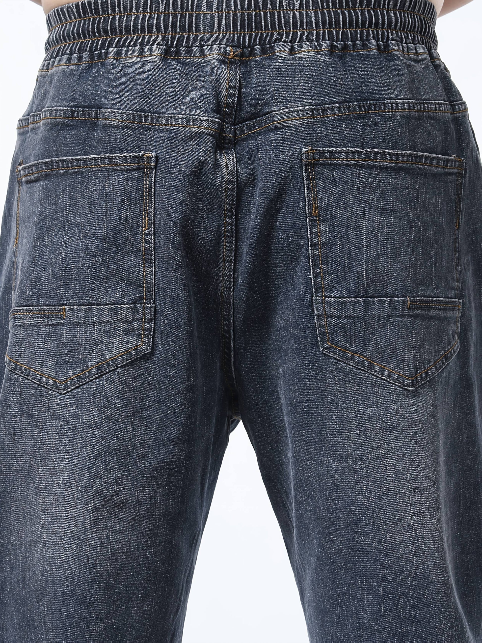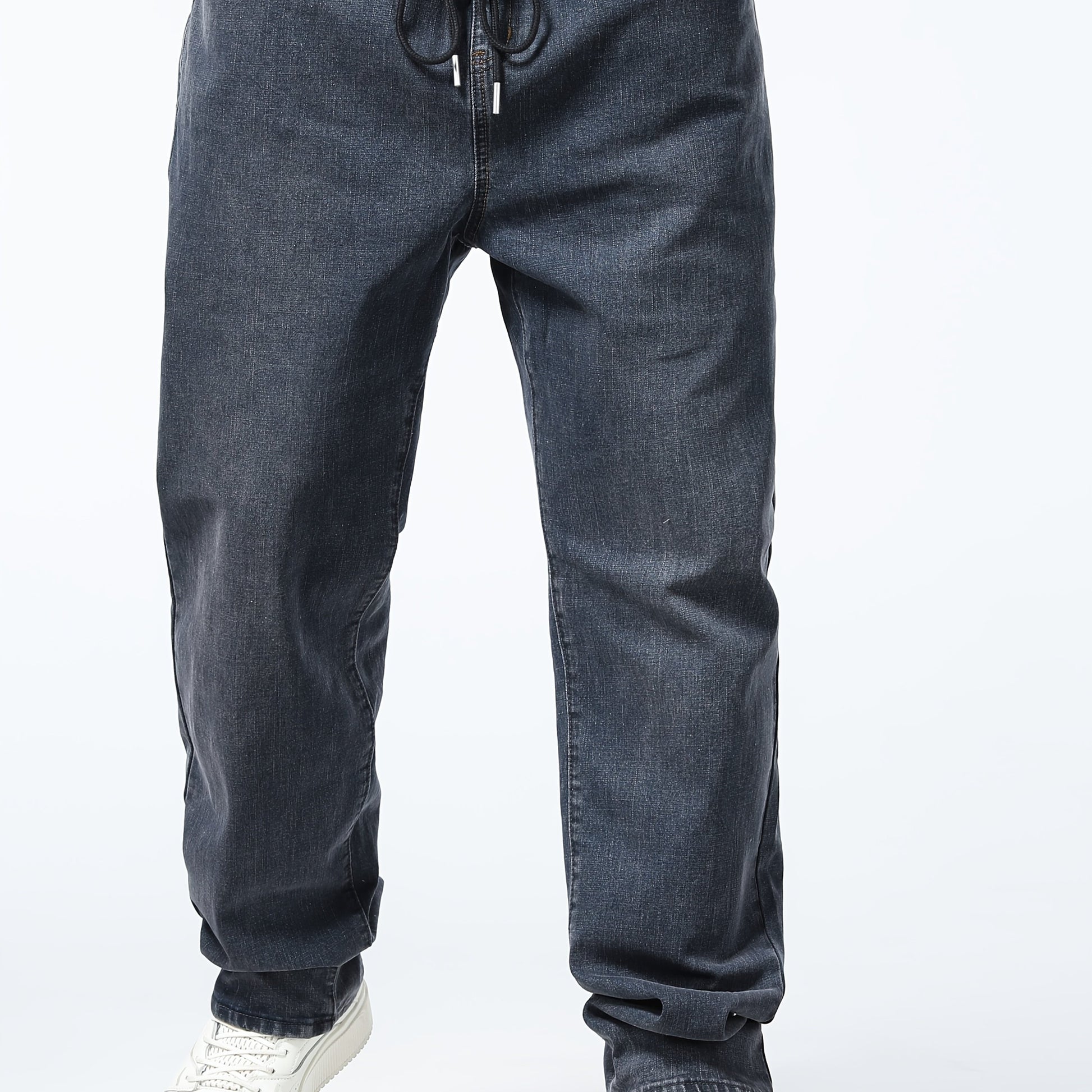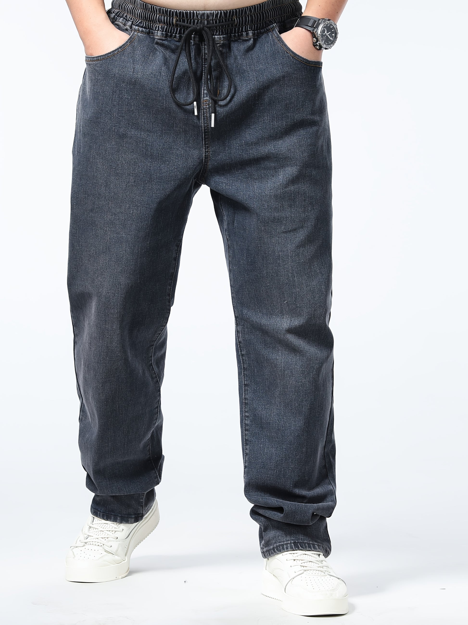 Plus Size Men's Casual Jeans Loose Fit Straight Leg Elastic Waist Rayon Blend Denim