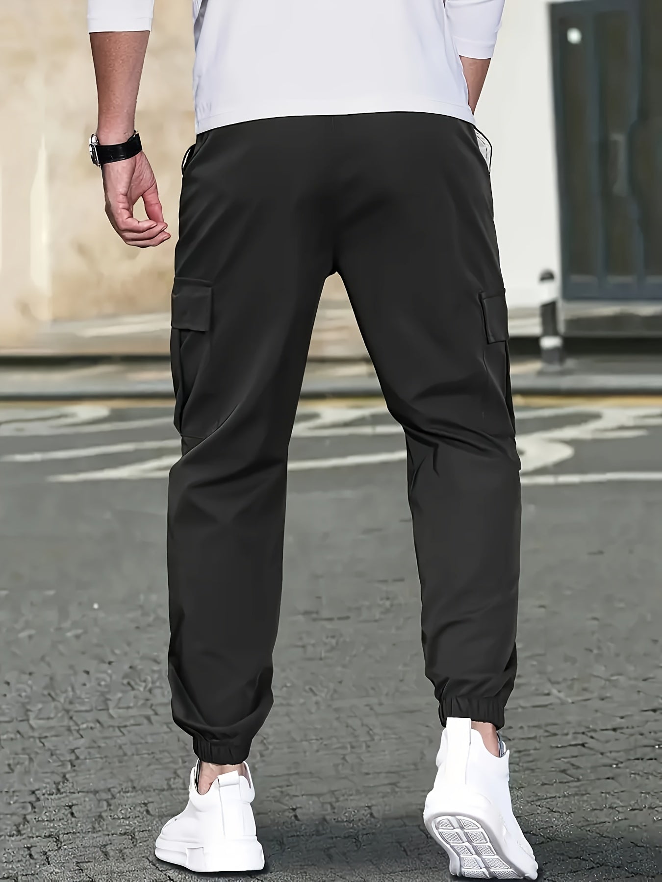 Plus Size Men's Tactical Cargo Pants Black Woven Polyester All-Season Casual Drawstring Waist