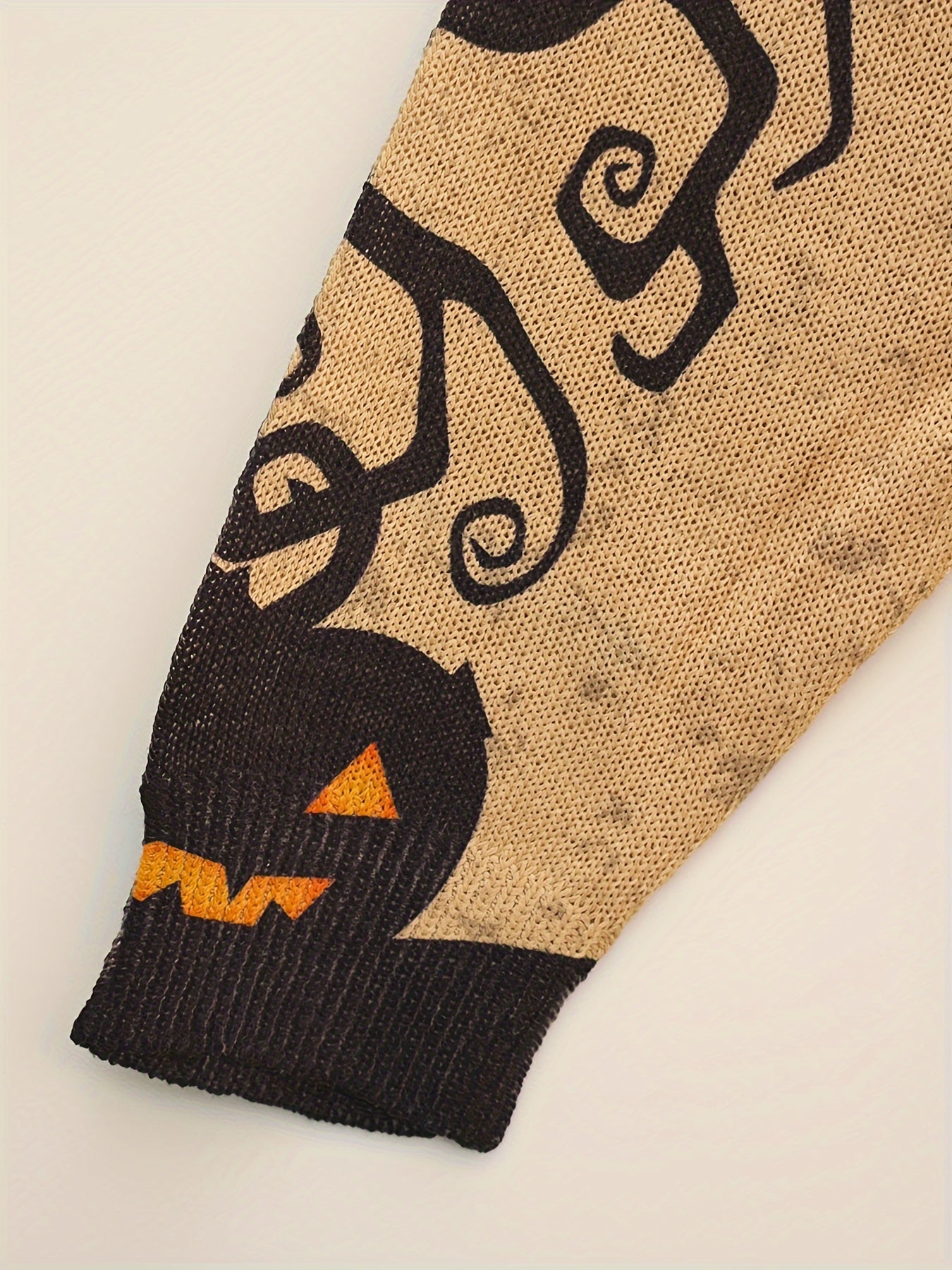 Plus Size Pumpkin Pattern Knitted Pullover Women’s Casual Crew Neck Sweater