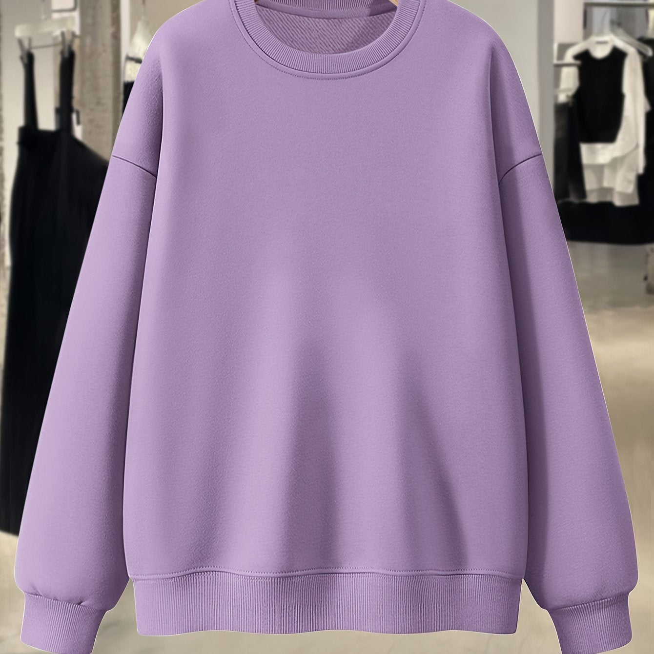 Plus Size Women’s Crew Neck Sweatshirt Solid Color Casual Fall Spring