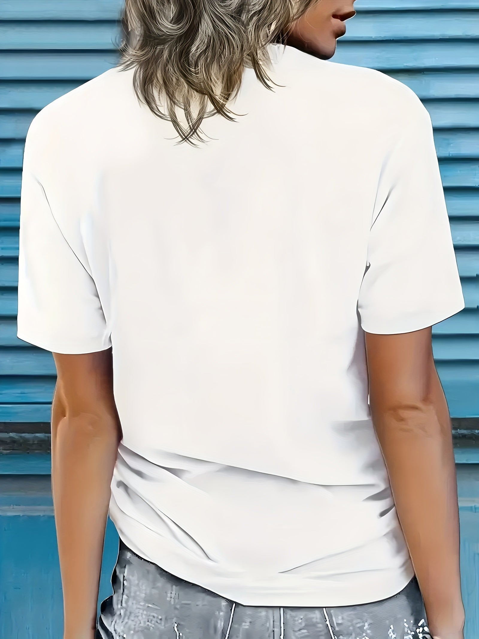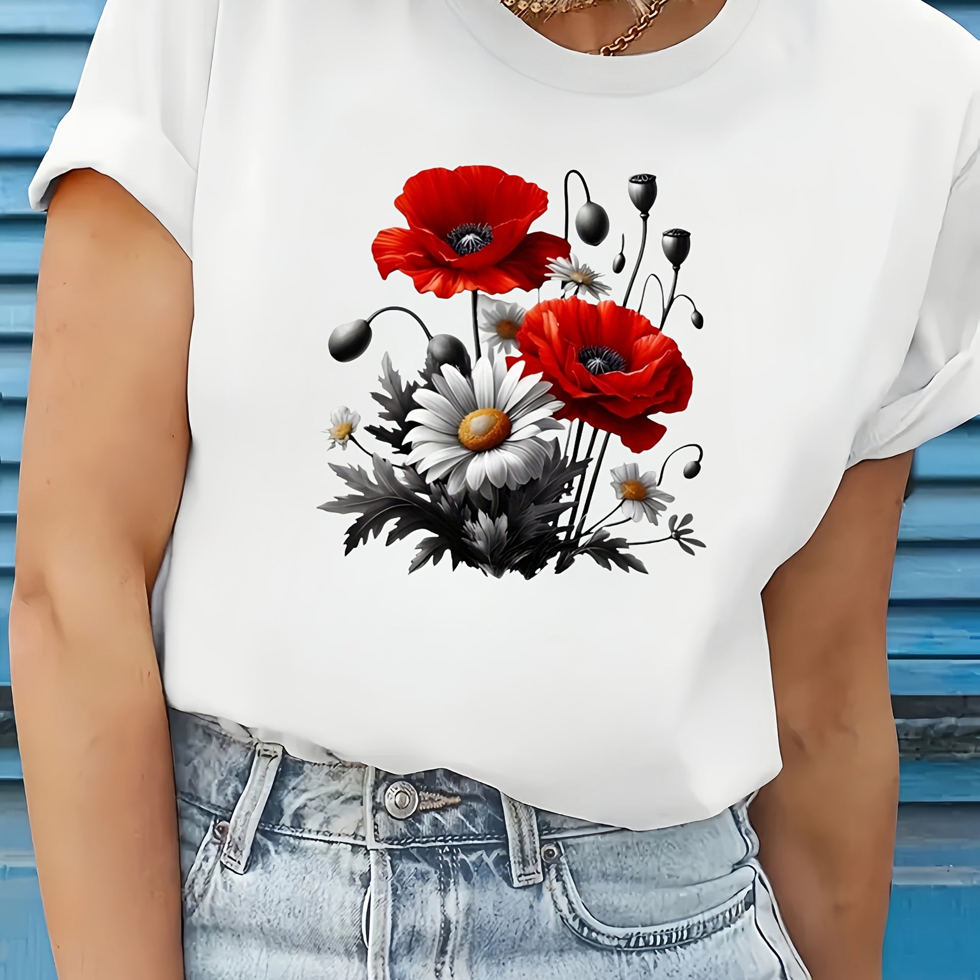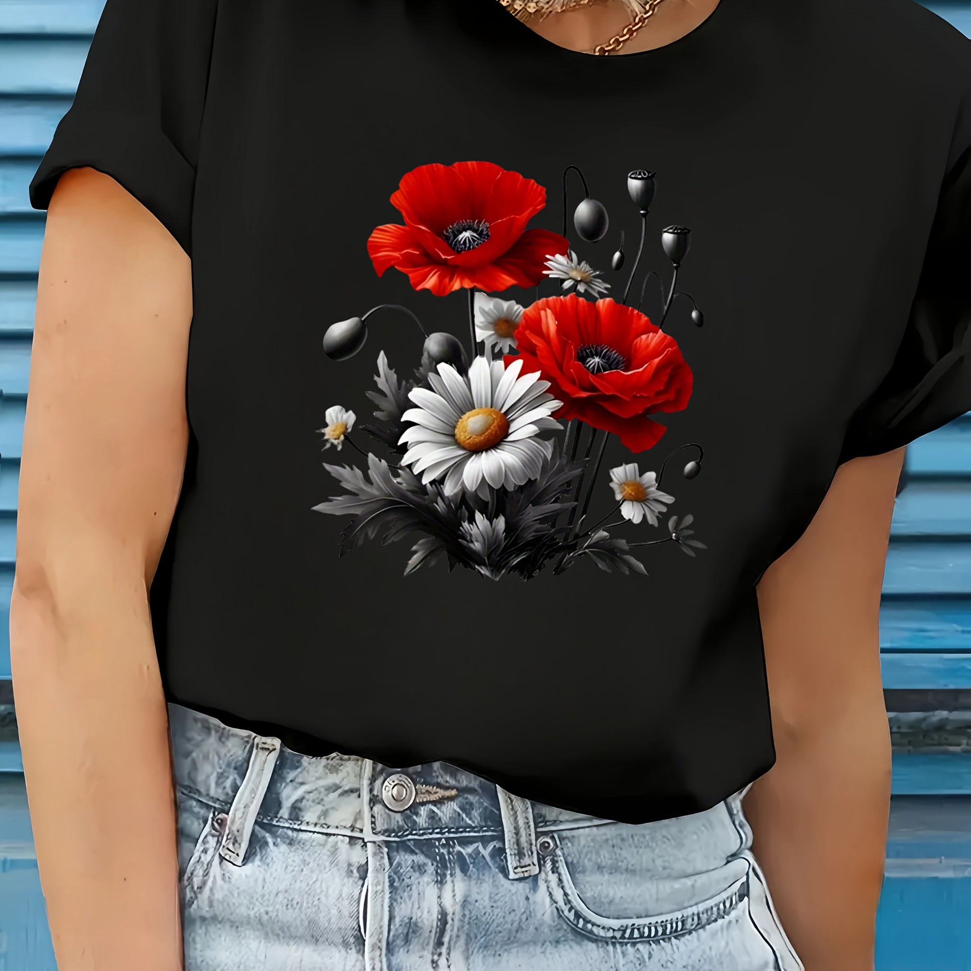Plus Size Women's Floral Print T-Shirt Blue Short Sleeve Casual Top