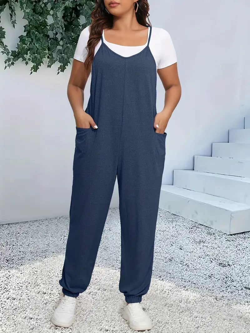 Plus Size Women's Heathered Cami Jumpsuit with Pockets Tapered Leg