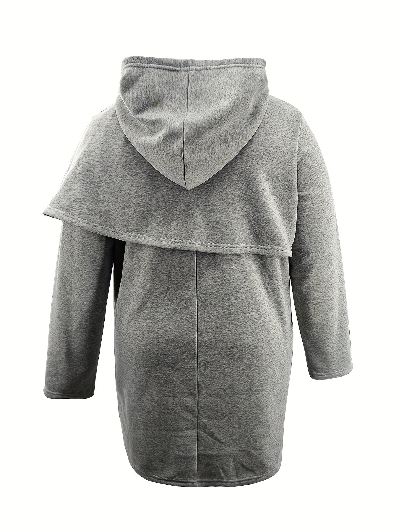 Plus Size Women’s Solid Hoodie With Pockets Long Sleeve Casual Sweater