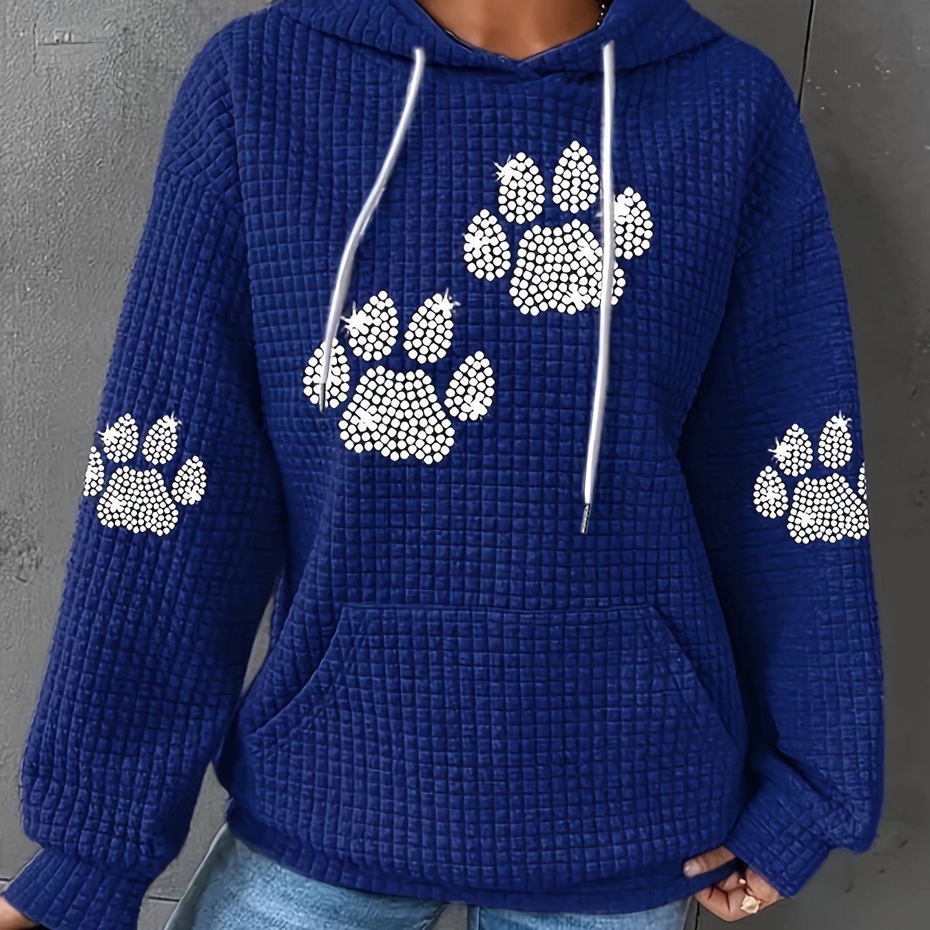 Plus Size Womens Hooded Sweatshirt with Rhinestone Paw Print Pullover
