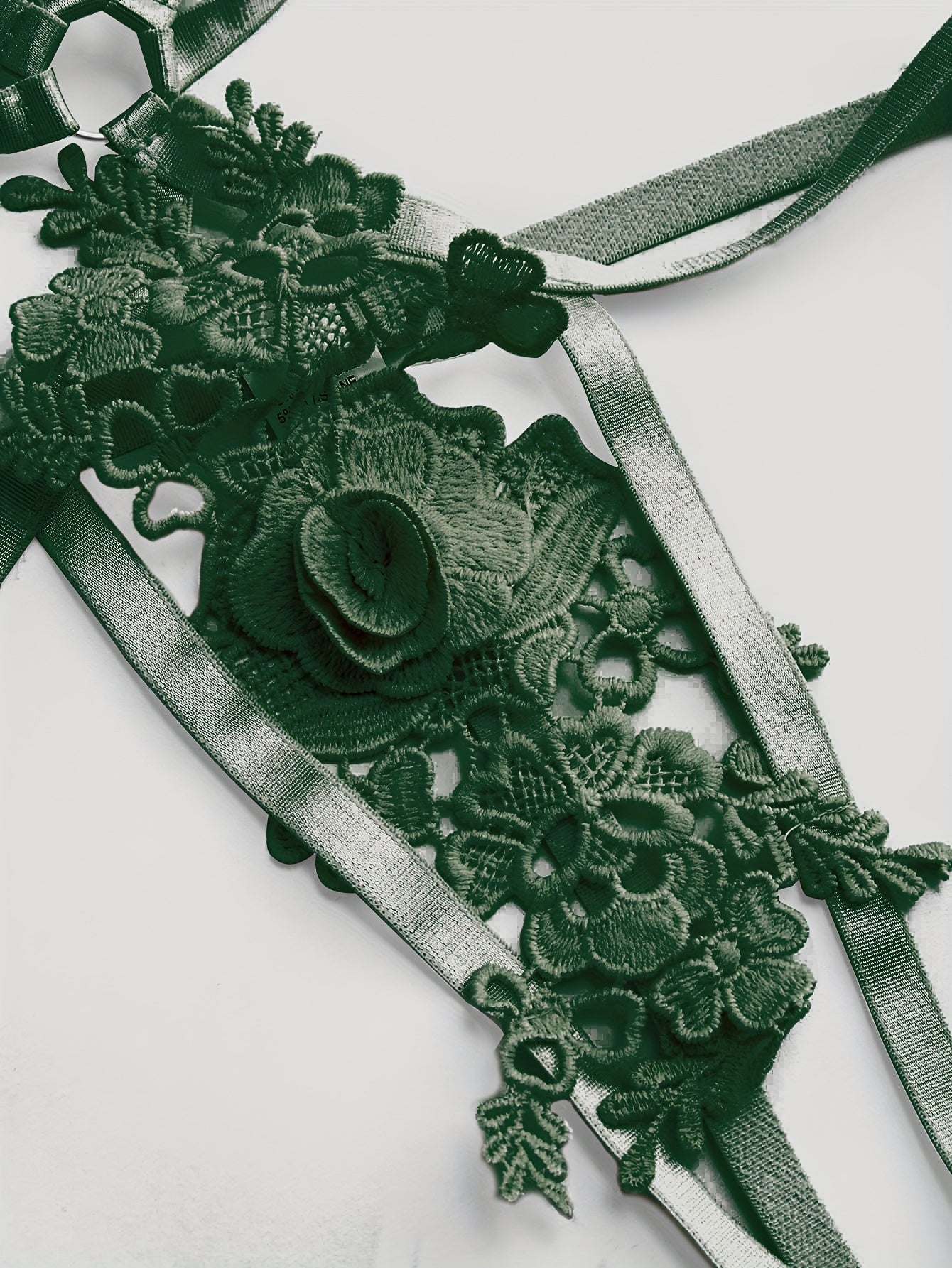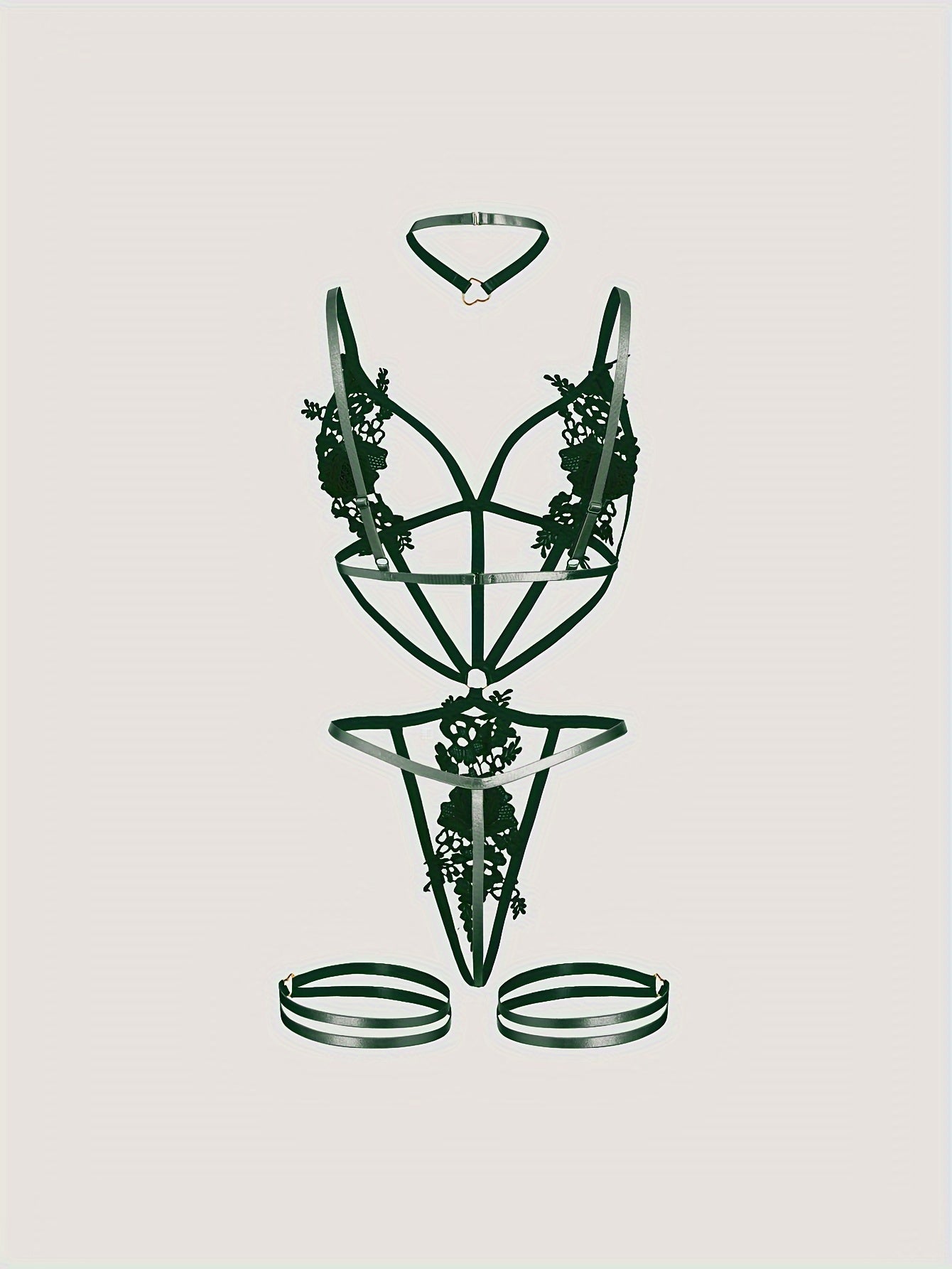 Women's Polyester Knit Bodysuit with Embroidery and Heart Pattern for Lingerie Set
