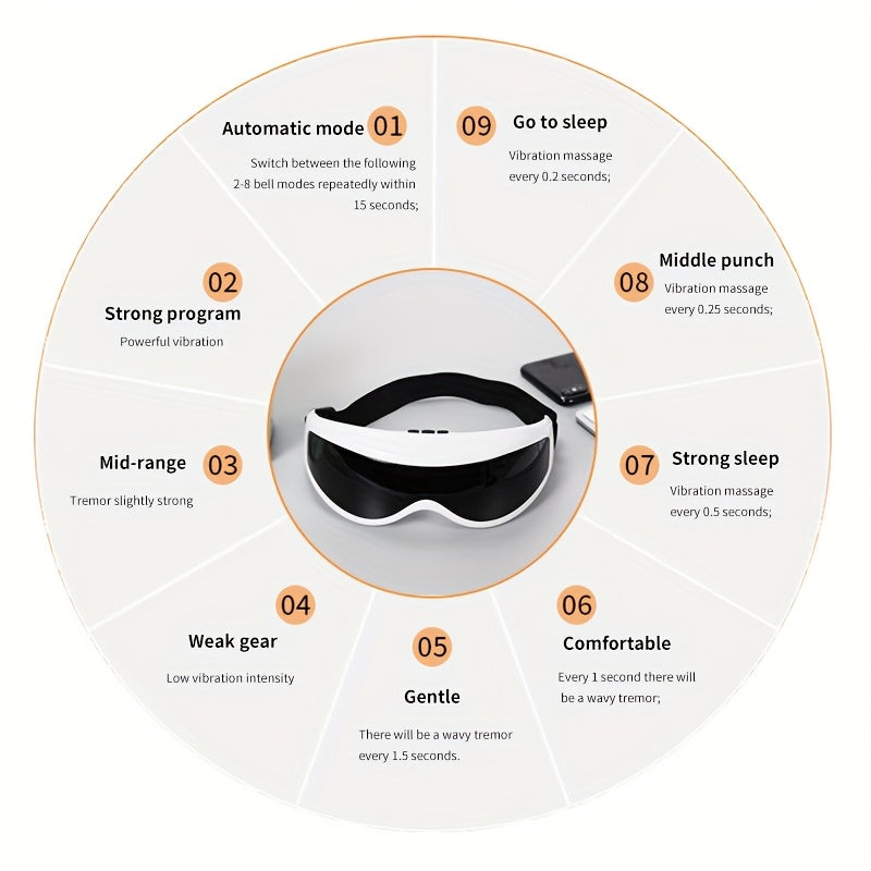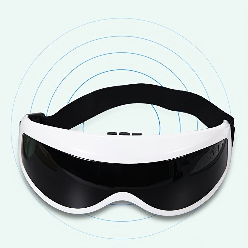 White Portable Electric Eye Massager with Vibrating Eyemask Adjustable Headband No Battery Required for Home Use