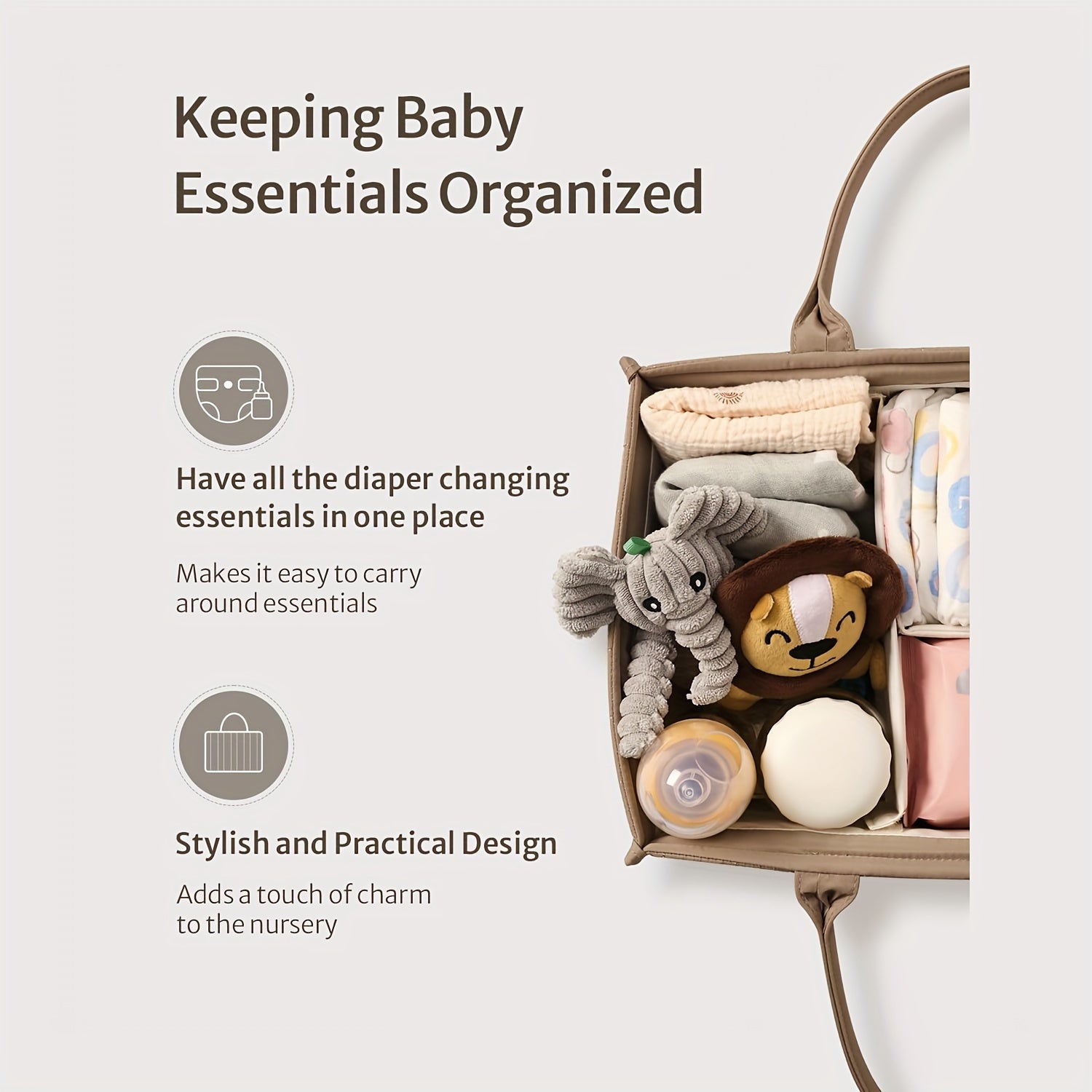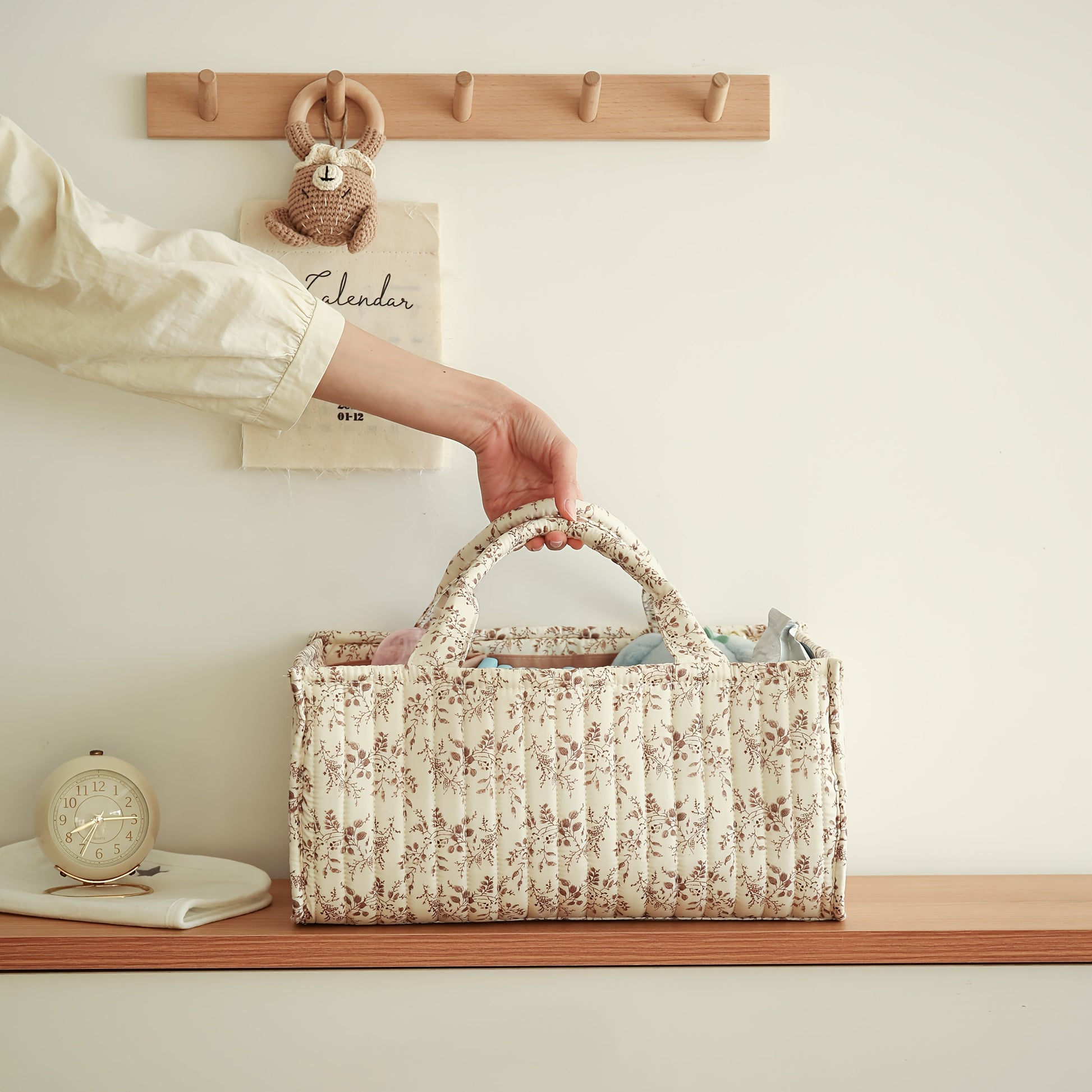 Nursery Storage Basket with Handle for Diapers Clothes and Toys Gray Polyamide