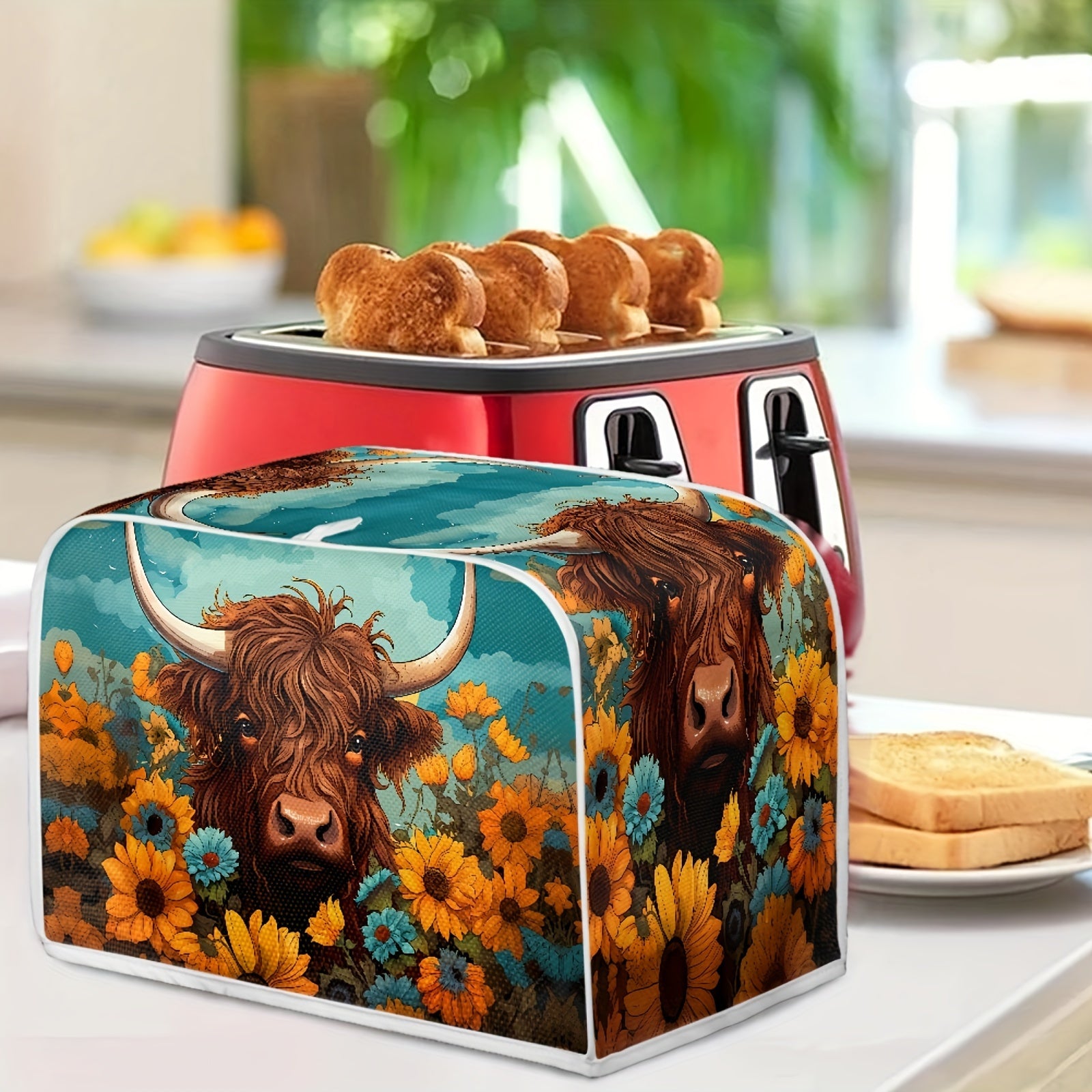 Kitchen Appliance Cover Small Toast Oven Dustproof Fingerprint Resistant Sunflower Highland Cow Print