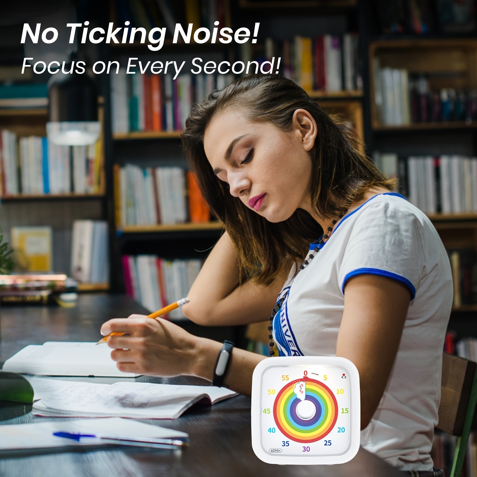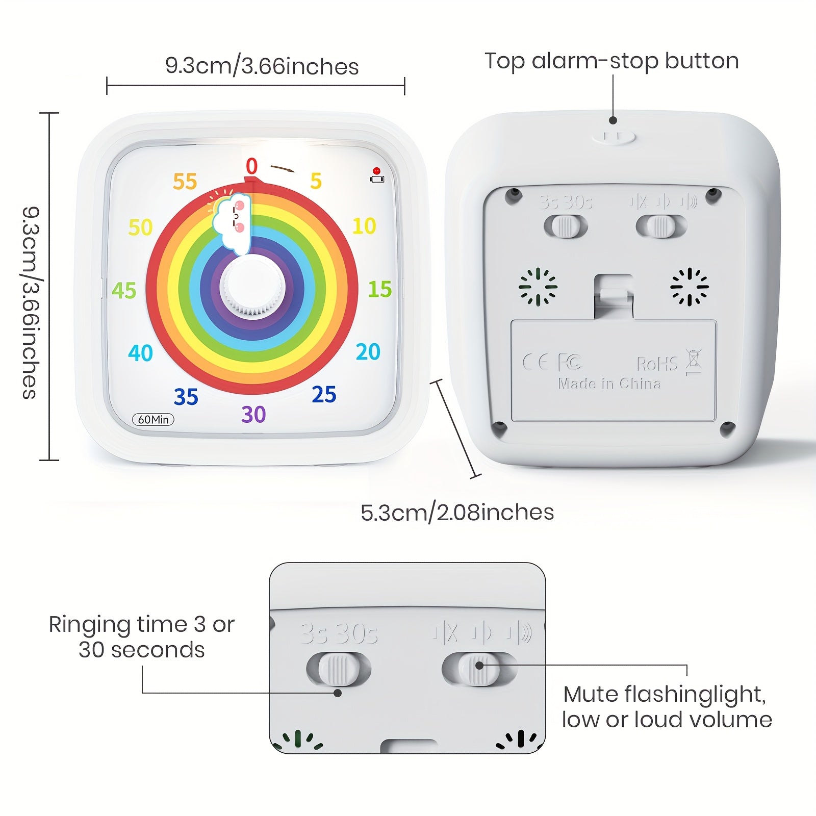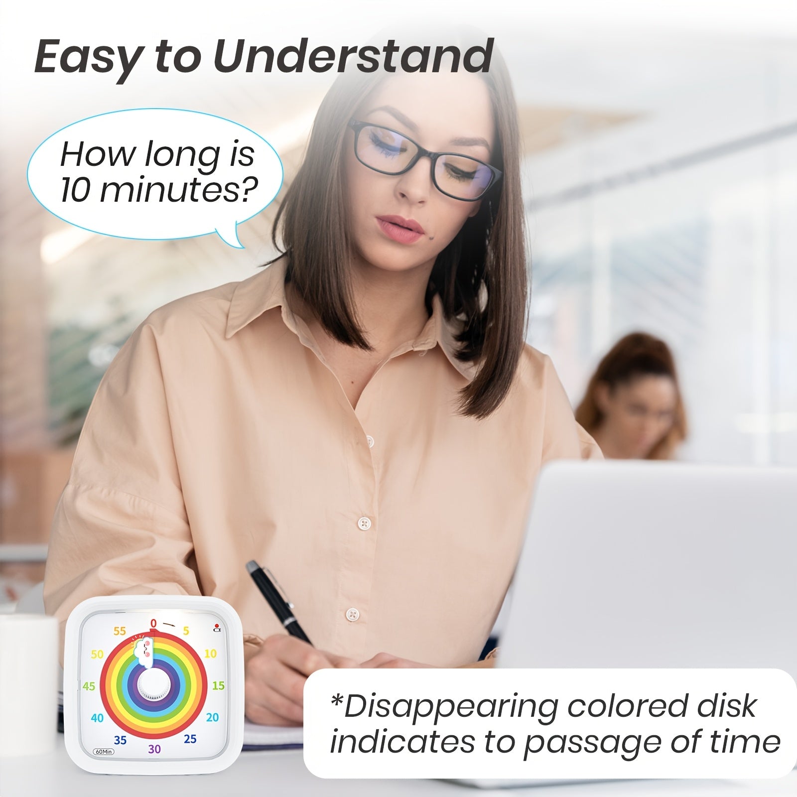 Quiet 60-Minute Visual Timer Rainbow White with Protective Case for Study Kitchen Office