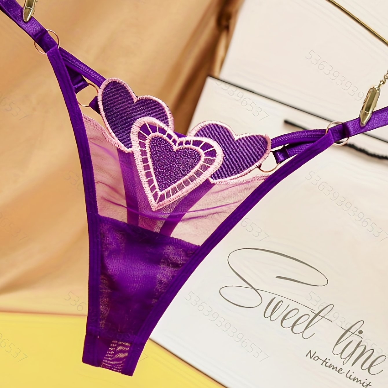 Women's Red Lace Thong with Sheer Mesh, Low-Rise, Breathable Lingerie