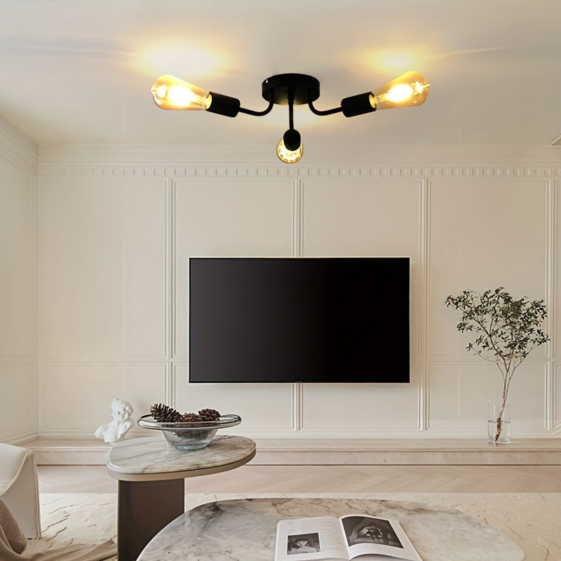 Black Retro Ceiling Light with E27 Bulb Base for Living Room Bedroom Kitchen