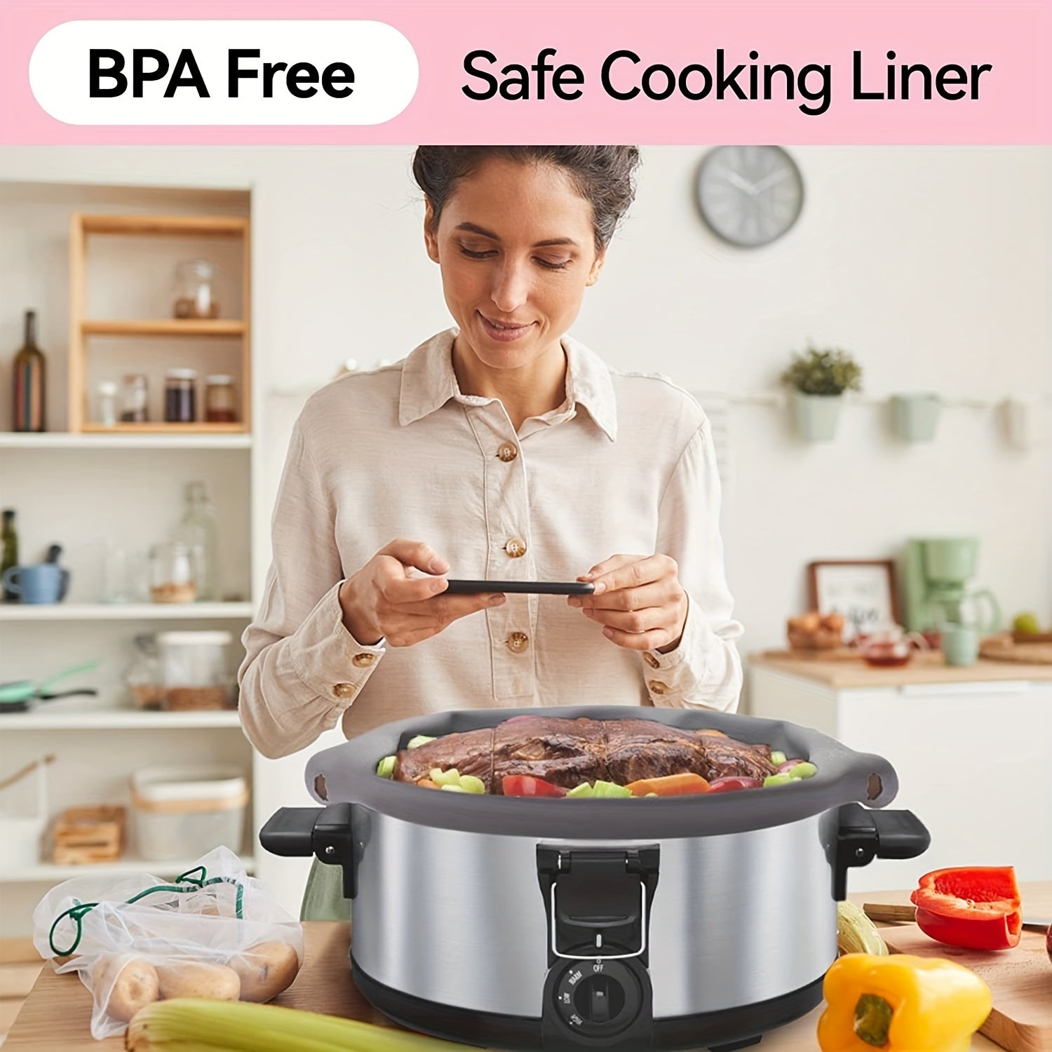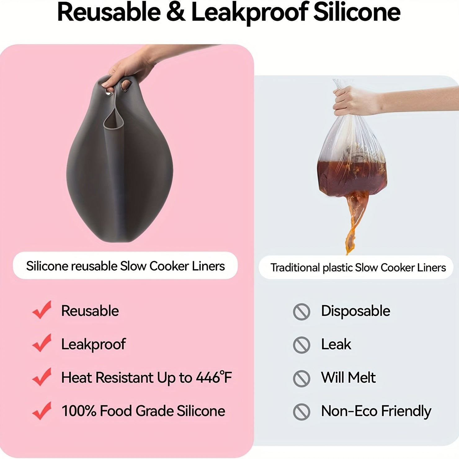 Reusable Silicone Slow Cooker Liners Set of 2 for 6 7 8 Quart Crockpots