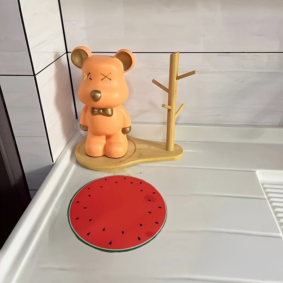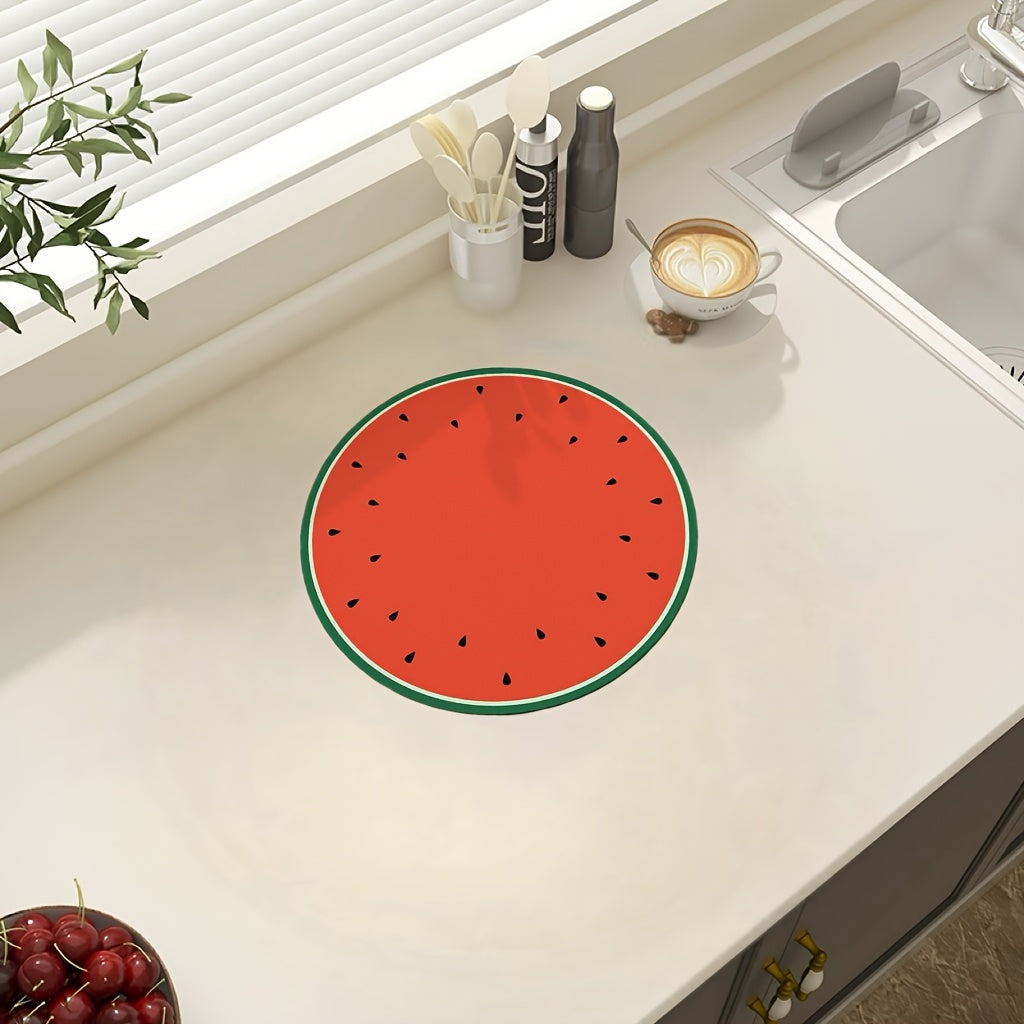 Round Watermelon Dish Drying Mat with Non-Slip Rubber Backing, Highly Absorbent