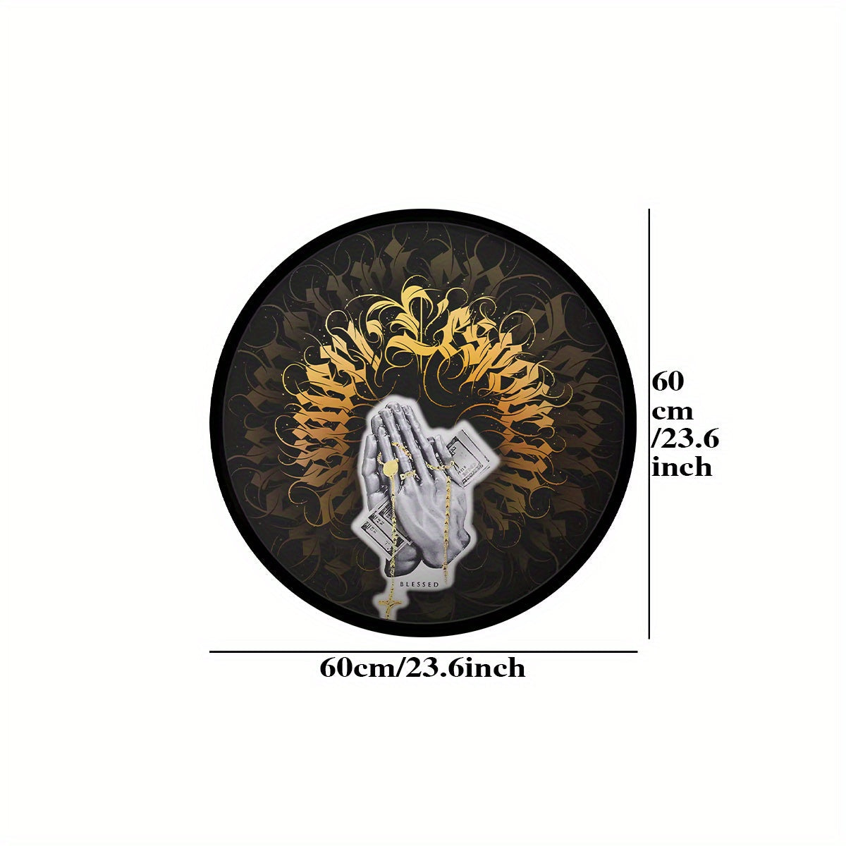 Round Velvet Rug Pad with Gold Gothic Font Non-Slip Entryway Doormat