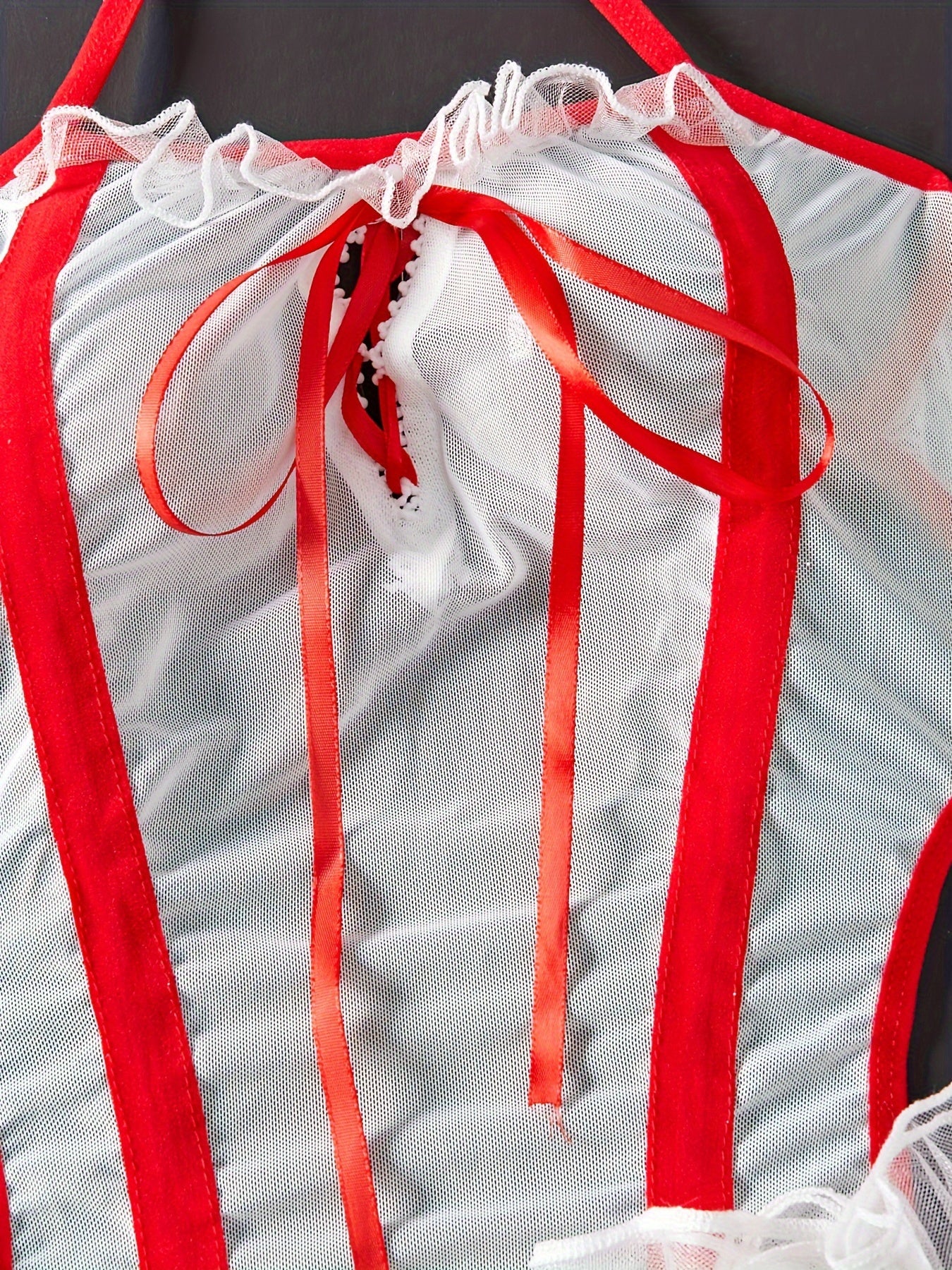 Women's Seductive Lace Lingerie Set with Hairband Bodysuit and Skirt