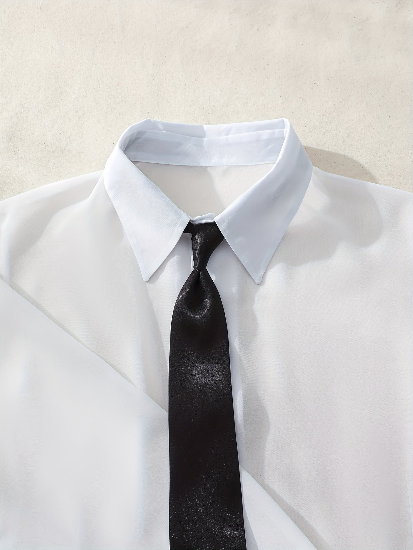 Women's Sheer Shirt and Bodycon Skirt Set with Tie and Thong