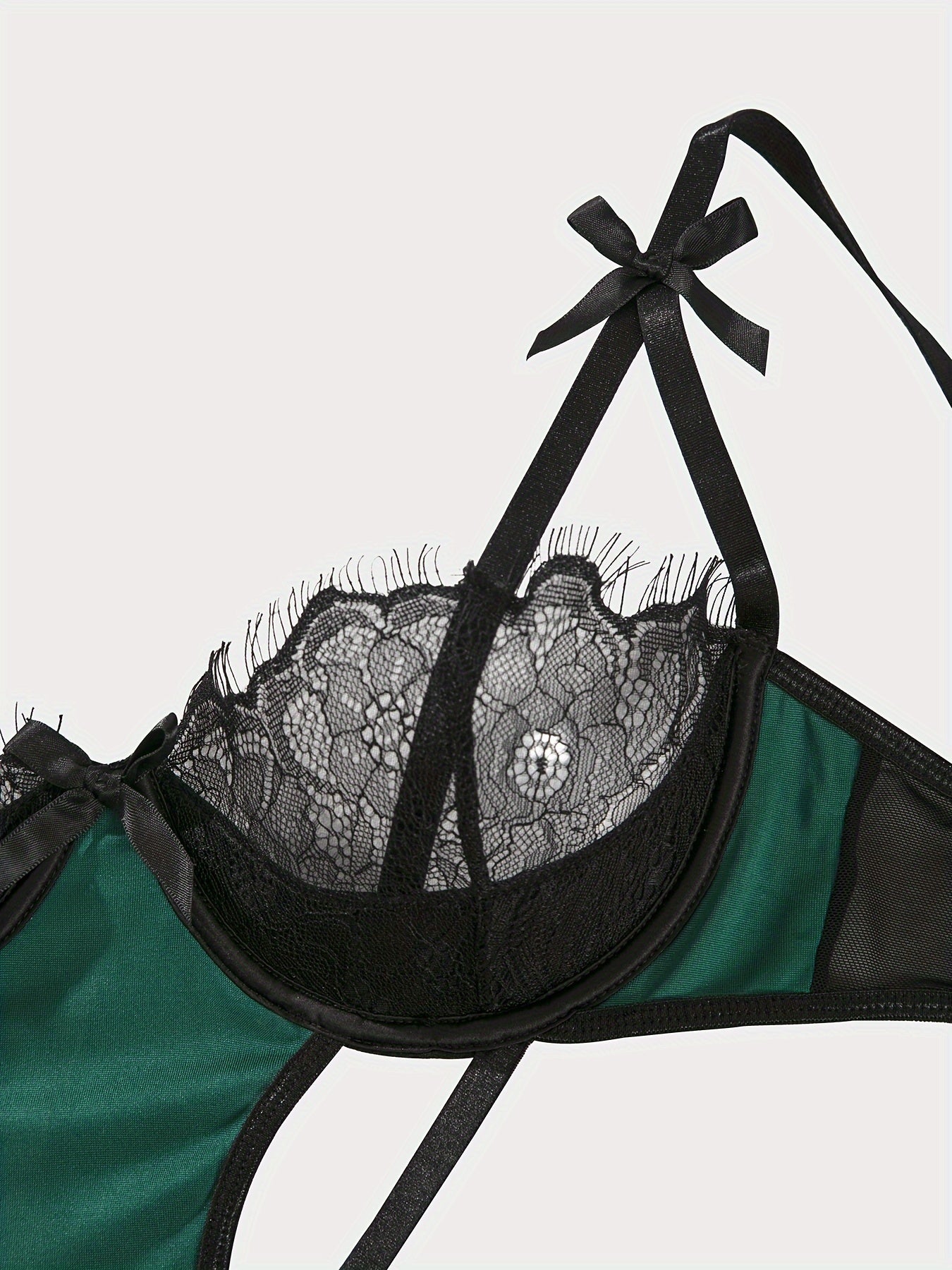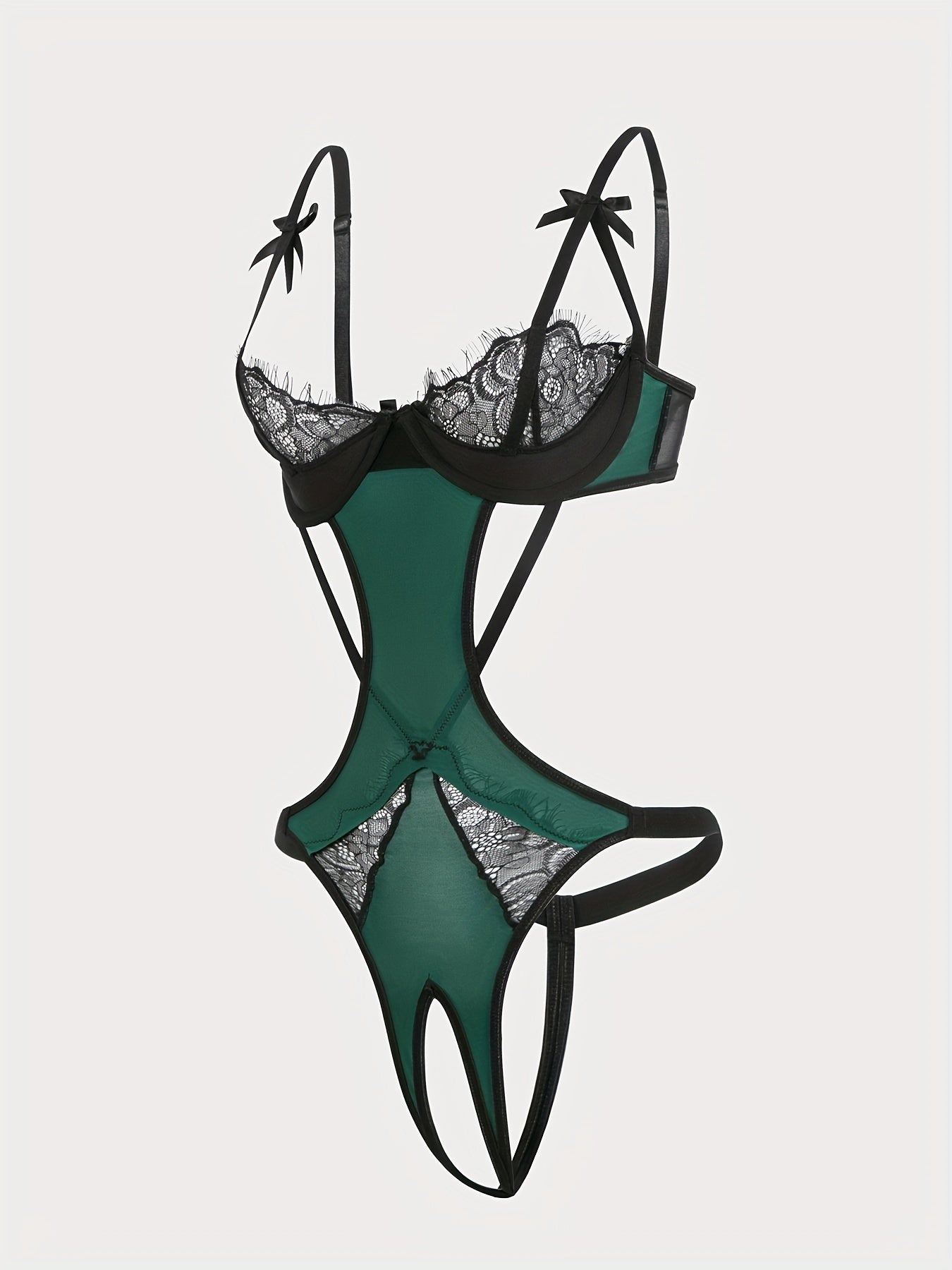 Women's Black Satin Bodysuit with Thin Shoulder Straps for Nightwear