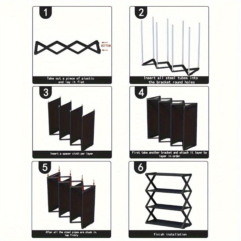 Four-Tier Shoe Rack with Cloth Cover, Durable Stackable Shoe Storage Cabinet