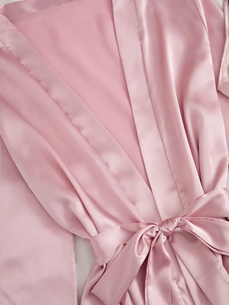 Color Contrast Lace Pajama Set for Women Satin Long Sleeve Fall Winter Elegant Micro Elasticity
