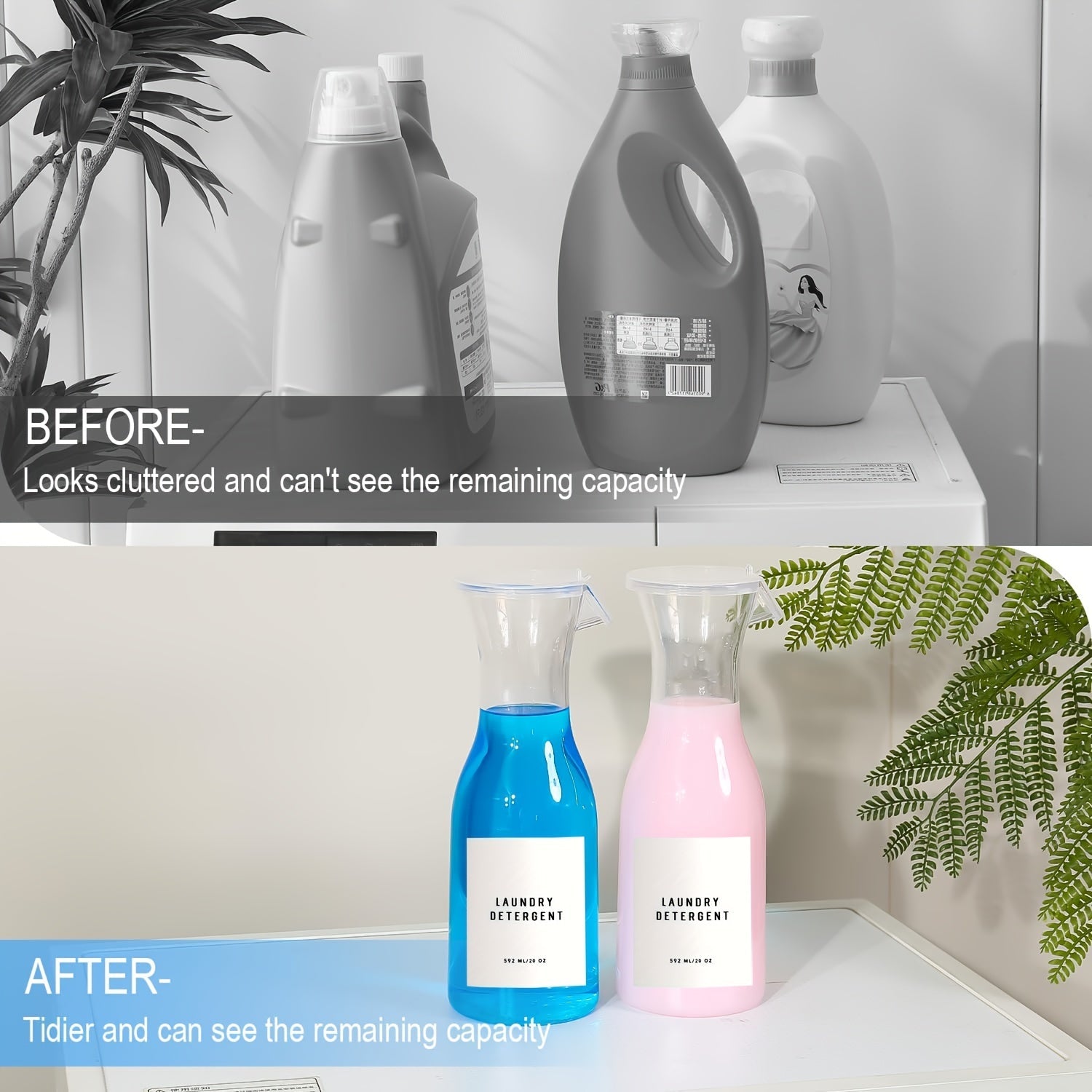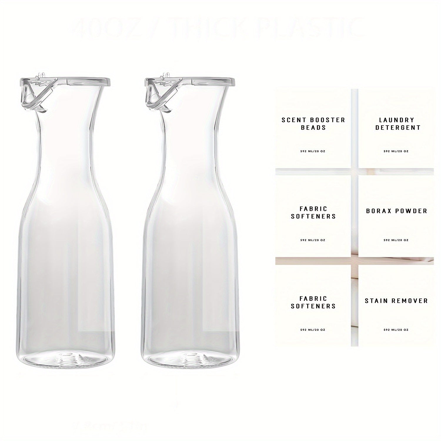 Set of 2 20oz Plastic Laundry Detergent Dispensers for Liquid Soap and Fabric Softener