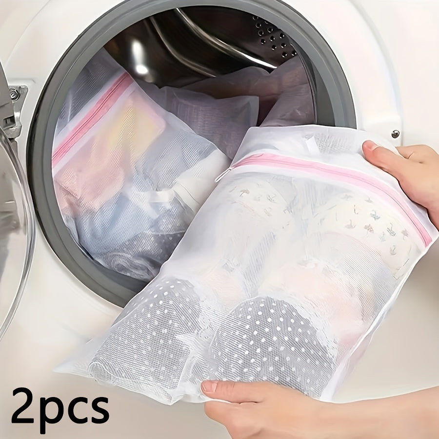 Set of 2 Laundry Mesh Bags for Clothing Storage and Travel Durable Polyester Zipper Bags