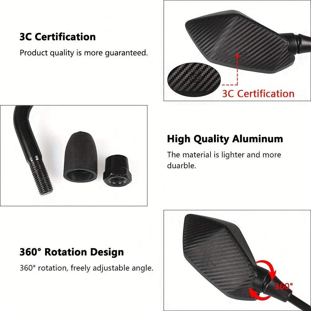 Set of 2 Motorcycle Rearview Mirrors 10Mm Universal for ATV UTV Scooter