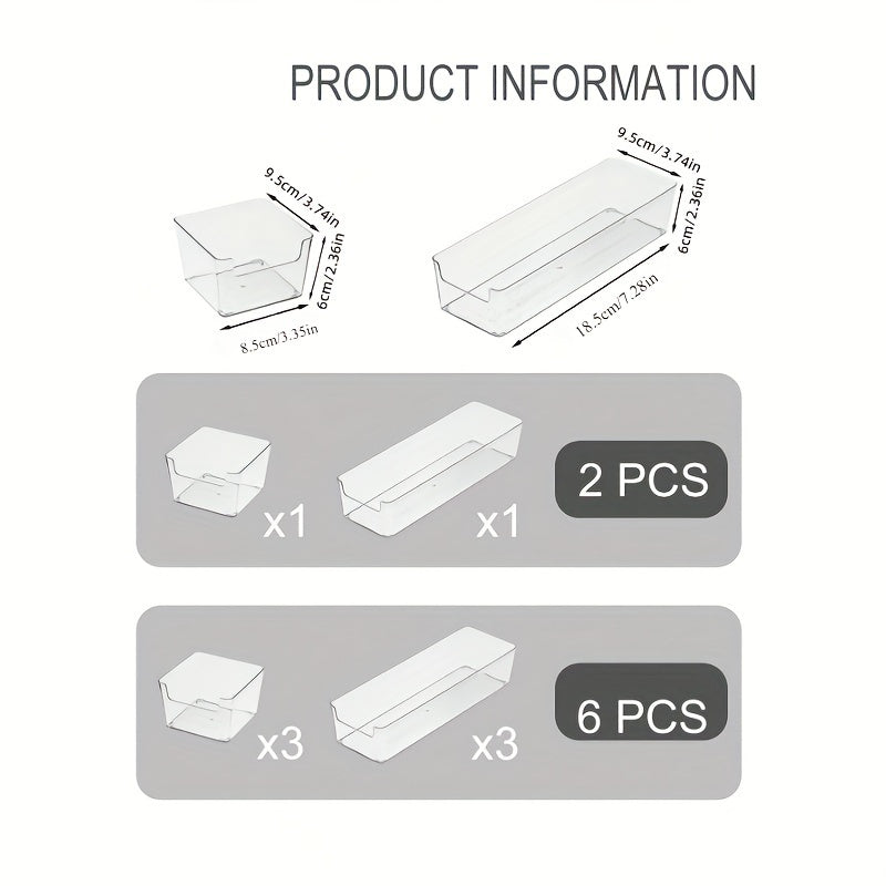 Set of 2 or 6 Clear Plastic Drawer Organizers for Cosmetics Jewelry Makeup and Storage