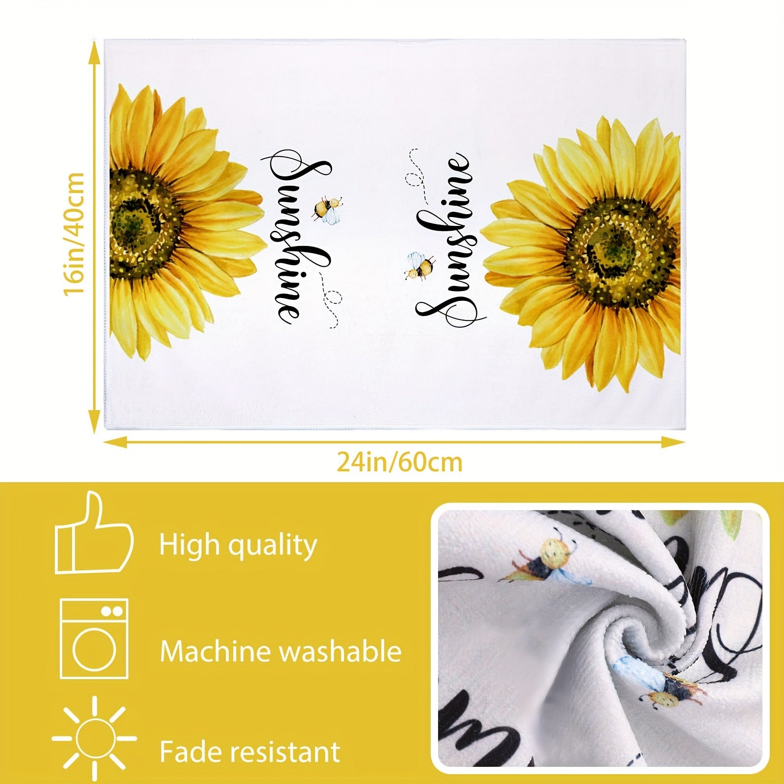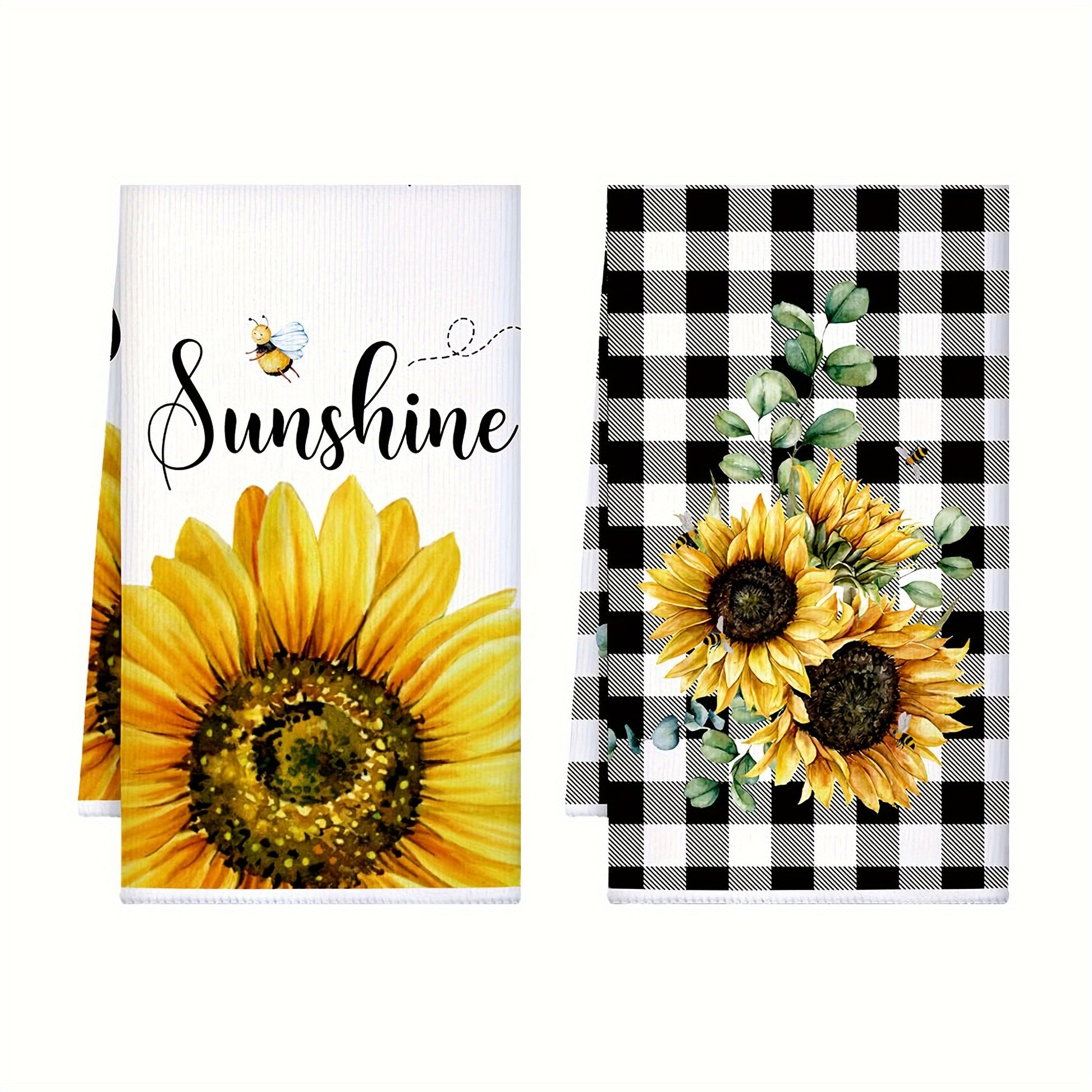 Set of 2 Sunflower Buffalo Plaid Kitchen Hand Towels for Cleaning and Decor