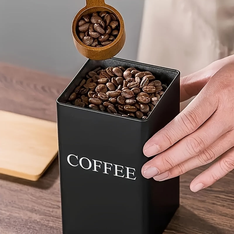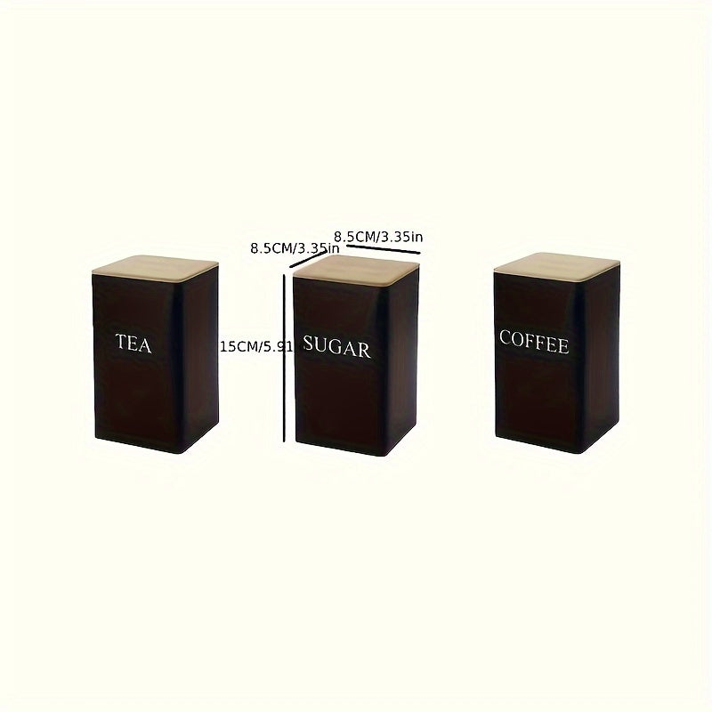 Set of 3 Iron Kitchen Canisters with Wooden Lids for Tea Coffee Sugar Storage