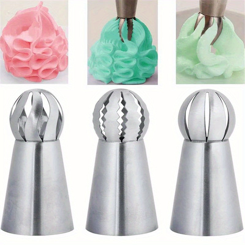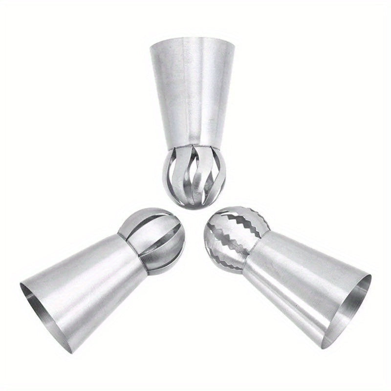 Set of 3 Stainless Steel Piping Tips for Cake Decorating and Icing Nozzles