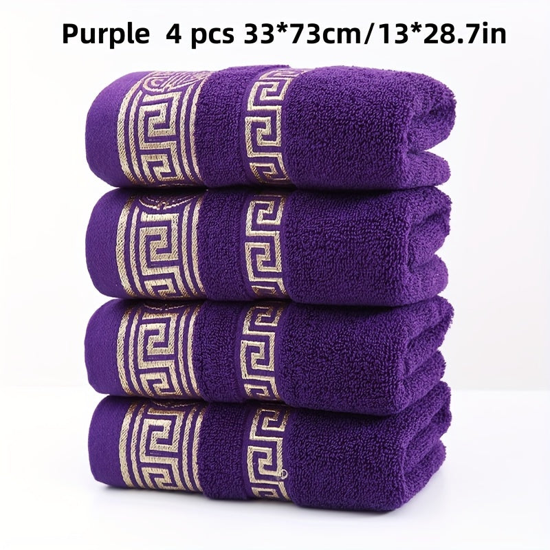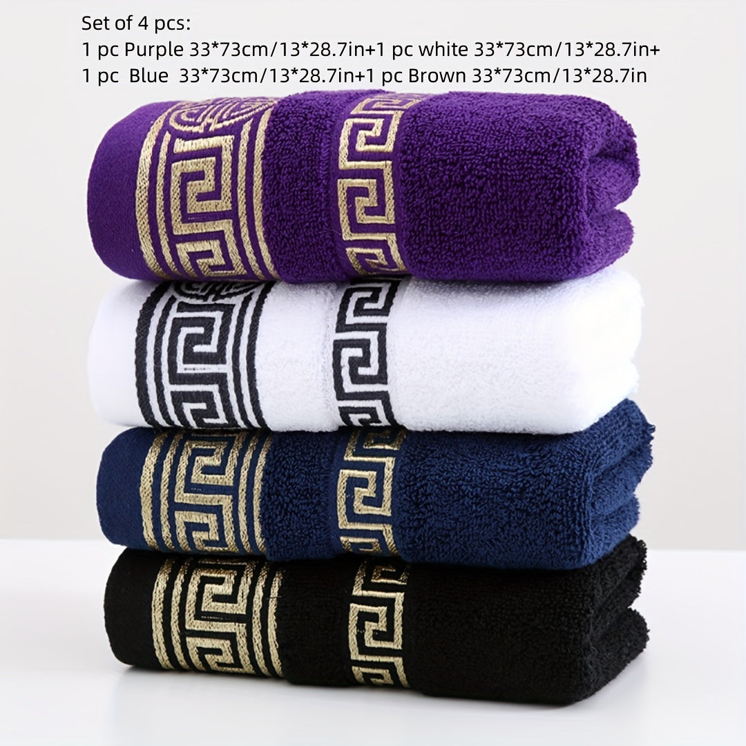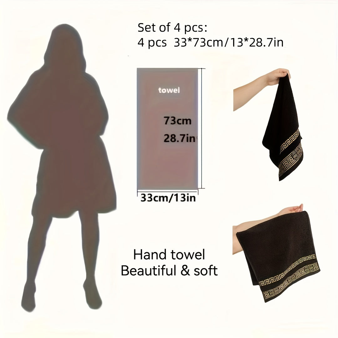Set of 4 Cotton Hand Towels in White Coffee Blue Black Geometric Pattern Absorbent