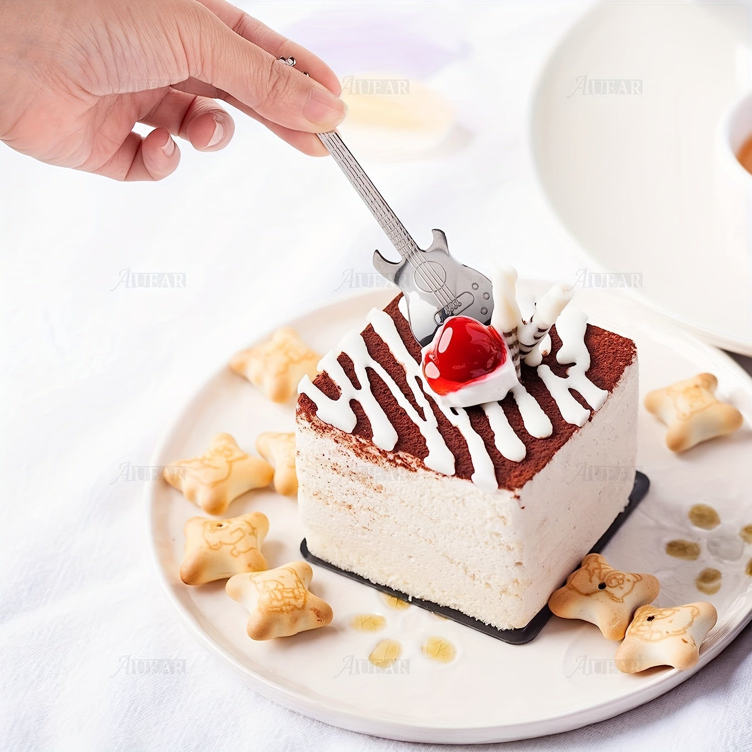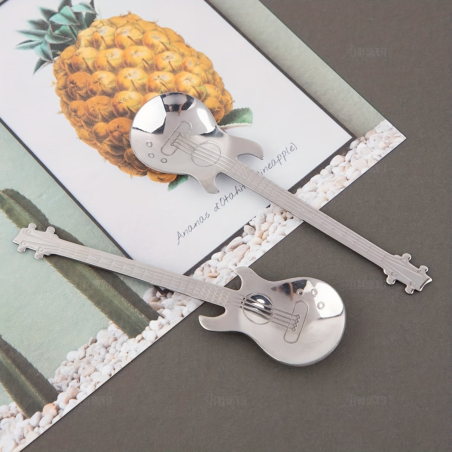 Set of 4 or 6 Guitar-Shaped Stainless Steel Coffee Spoons for Stirring and Spreading