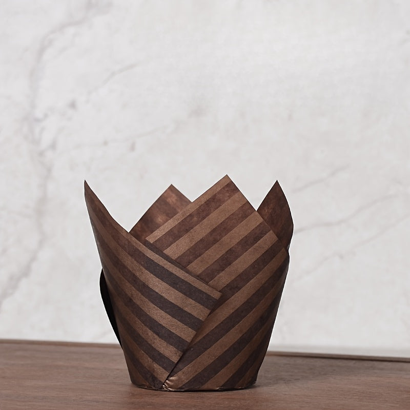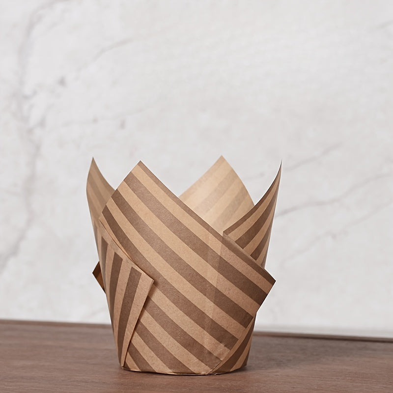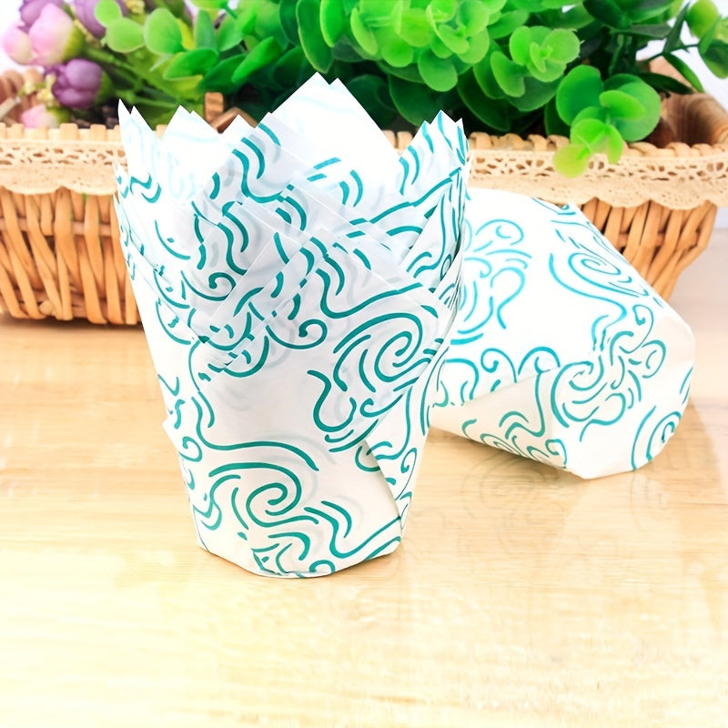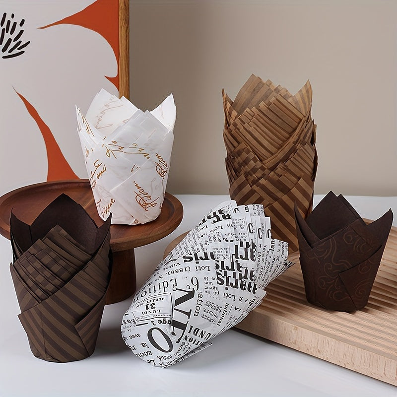 Set of 50 Disposable Tulip Muffin Cups with Cloud Stripes Newspaper Pattern, Greaseproof Paper Liners