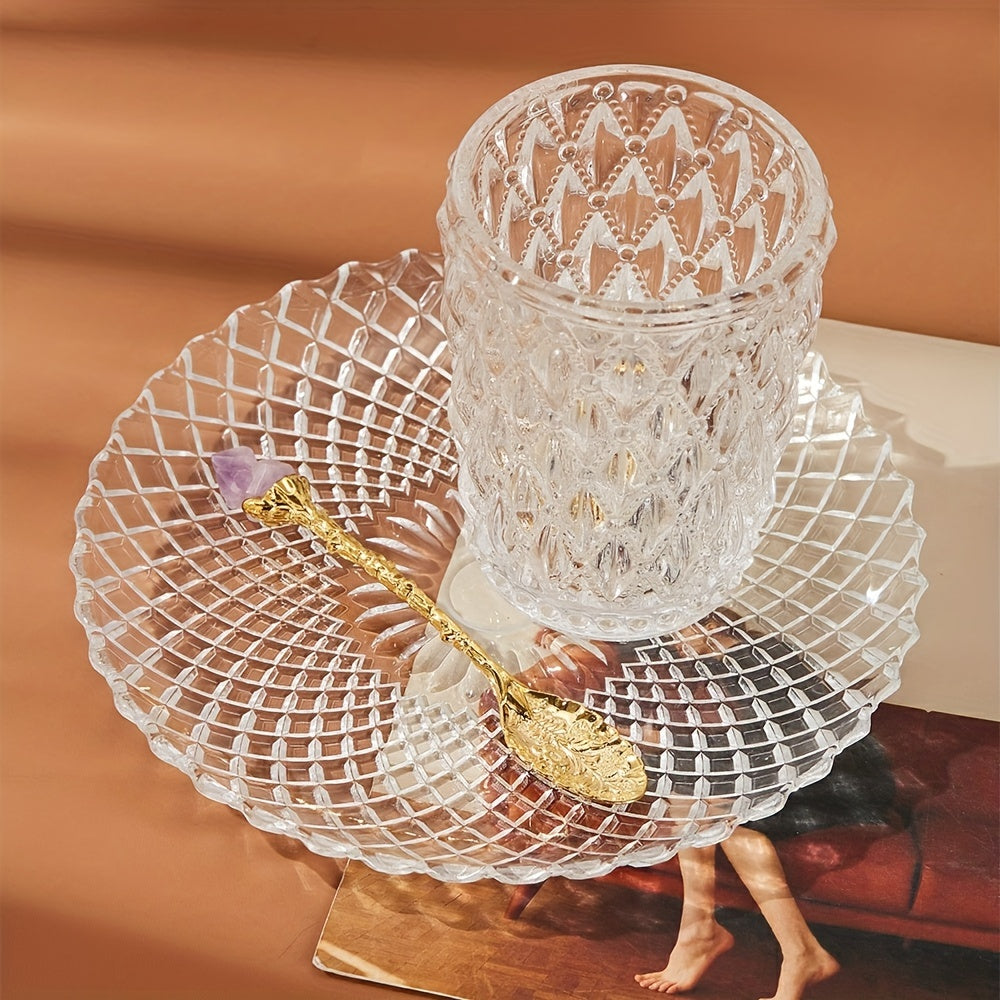Set of Four Natural Amethyst Spoons with Tooth Flower Pattern for Desserts and Coffee