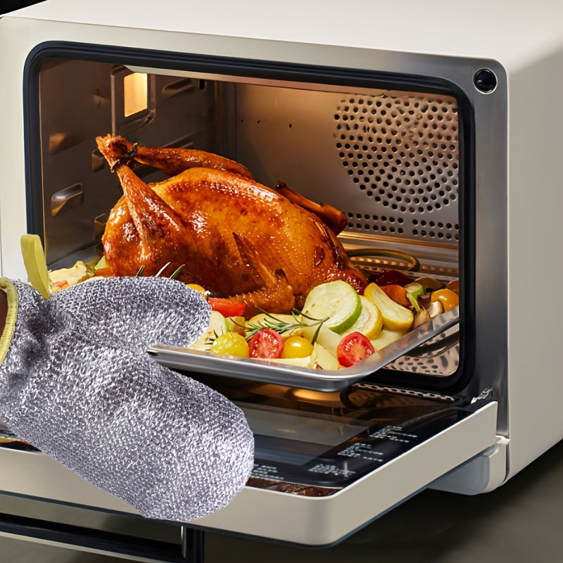 Set of Four Silver Cleaning Gloves with Liner for Kitchen Bathroom and Patio Use