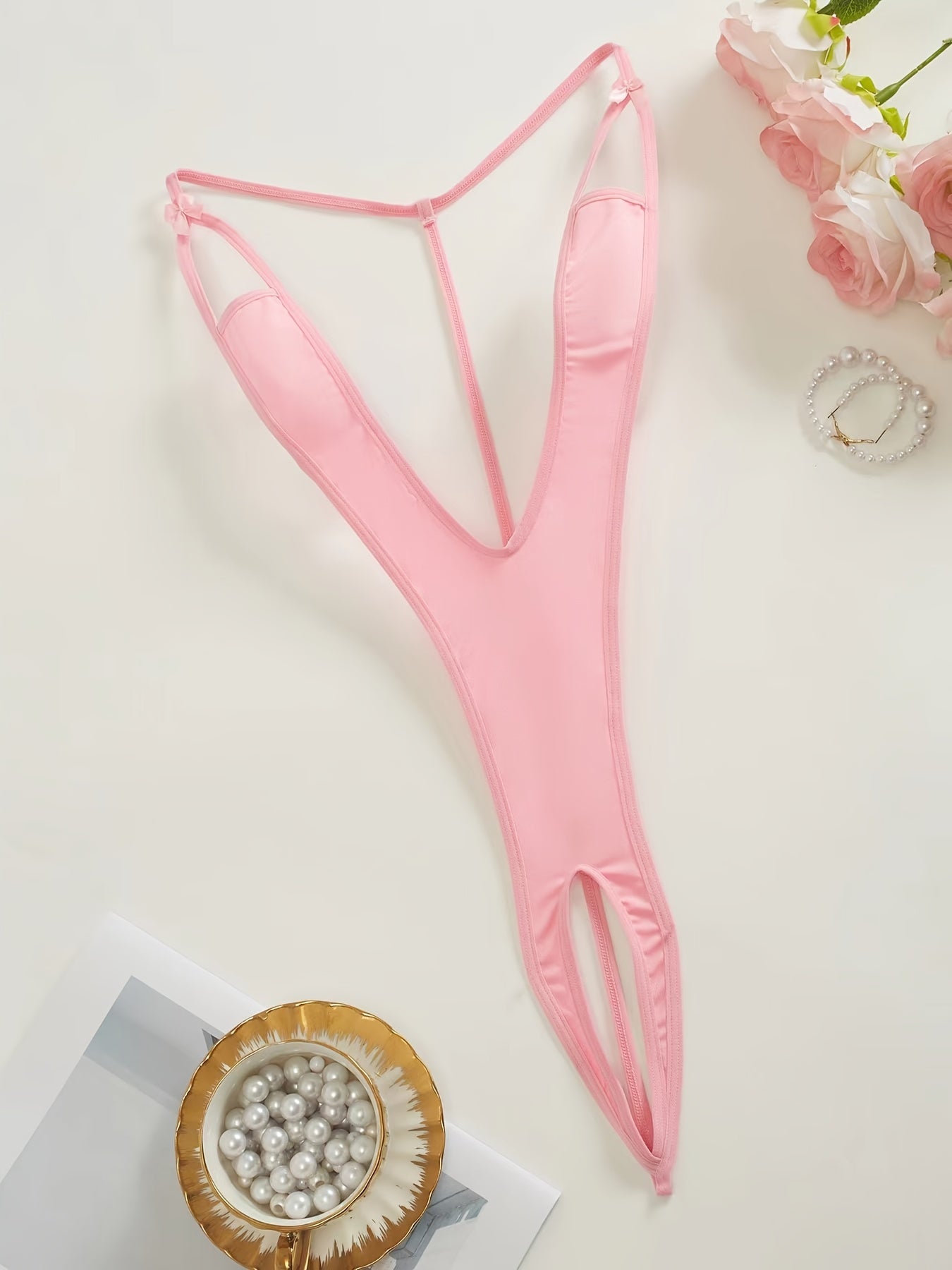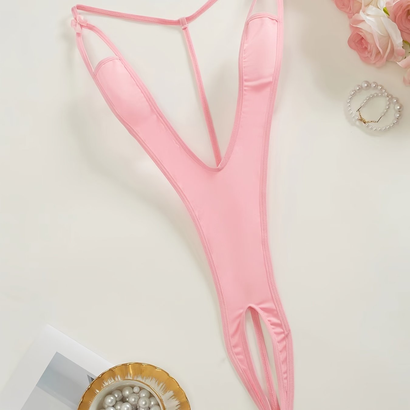 Women's Black Lace Bodysuit with Long Sleeves and V-Neck