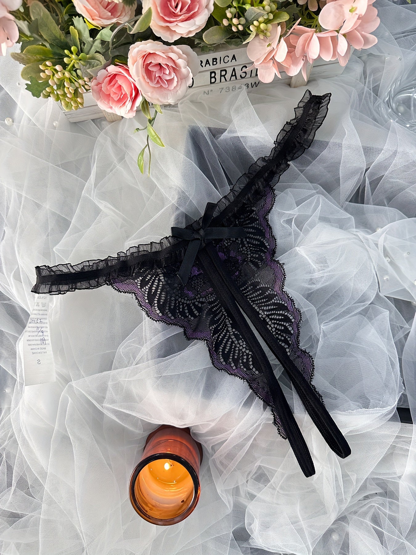 Women's Low Waist Lace Panties with Open Crotch and Charm Design