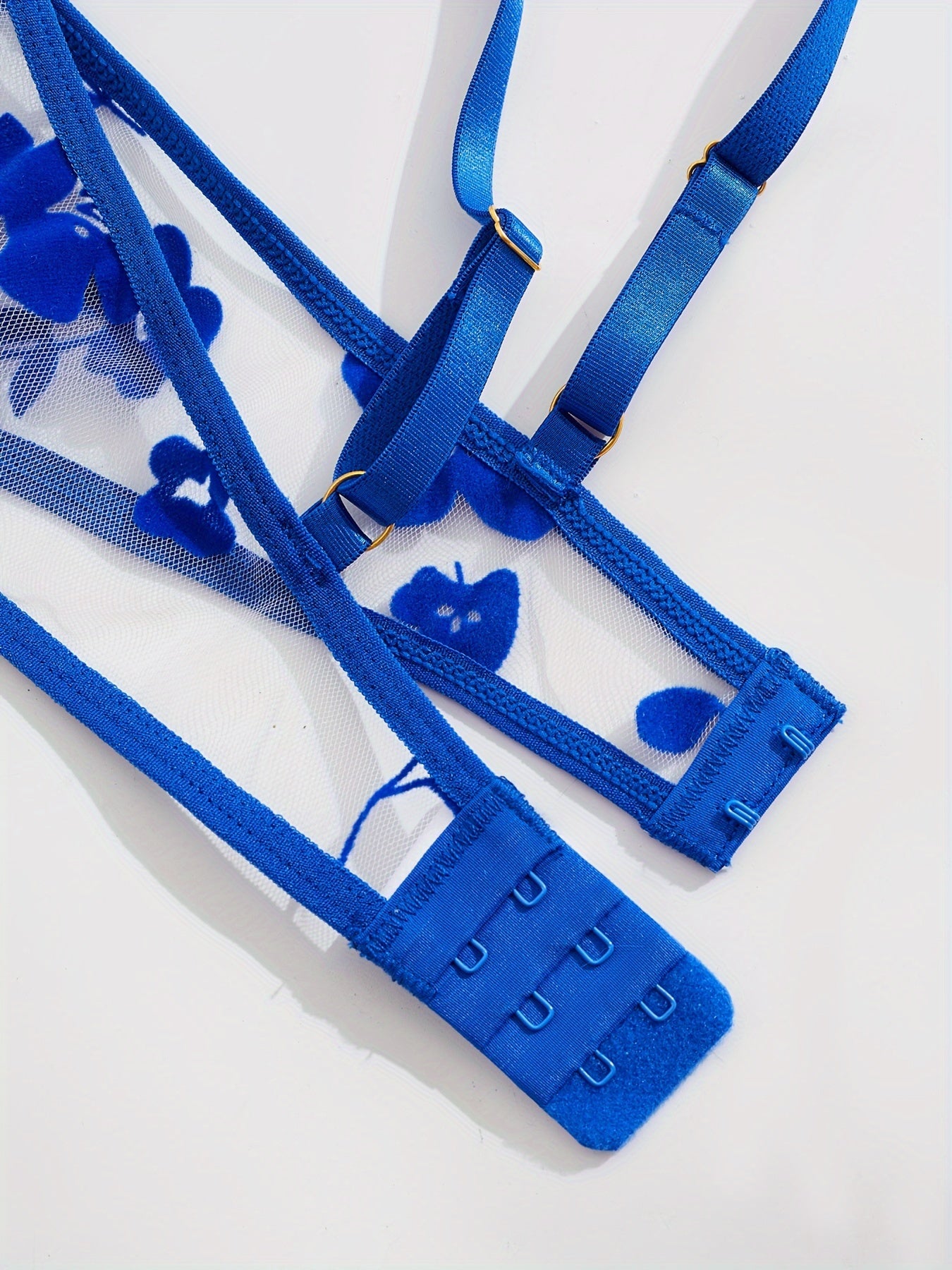 Women’s Lace Mesh Open Cup Lingerie Set with Adjustable Straps