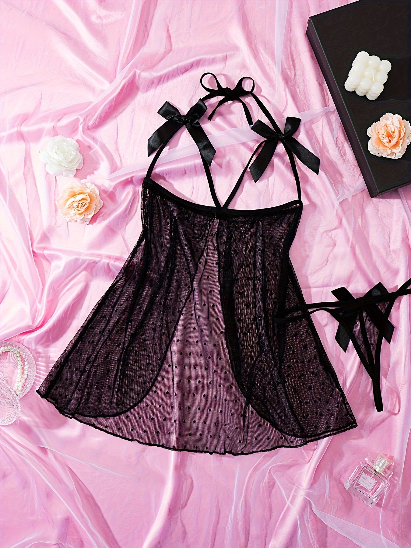 Polka Dot Halter Neck Dress with Lace Detail Polyester Knit for Women