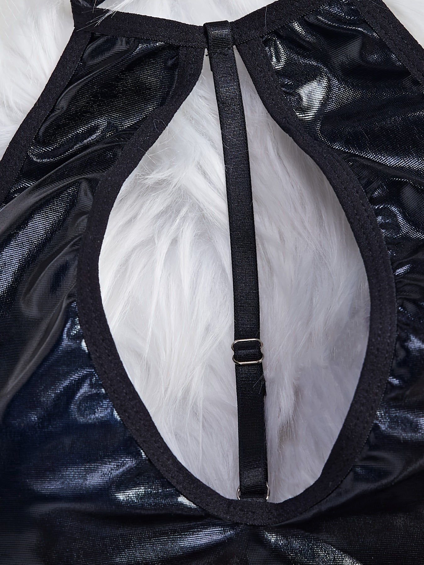 Women’s Black PU Halter Bodysuit with Cut Out Backless Design