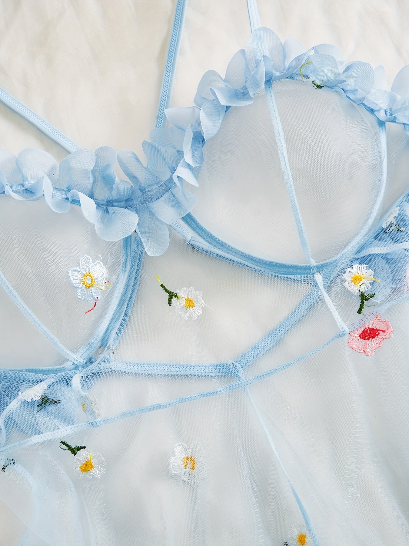 Women's See-Through Lace Dress with Flower Pattern Cross Straps and Backless Design for Lingerie