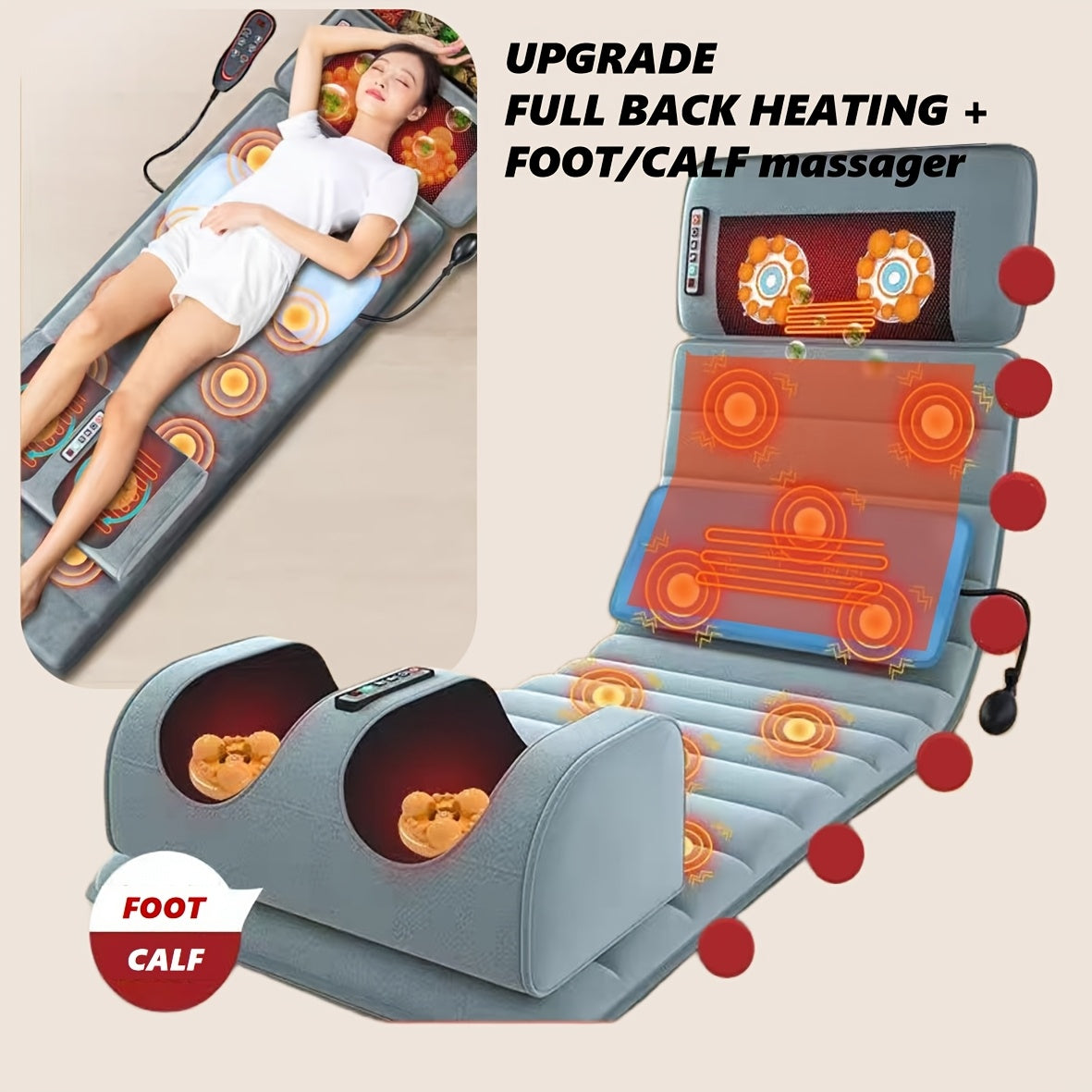 Full Body Massage Bed with Neck Shiatsu Lumbar Support 10-Zone Vibration Gray Upholstery