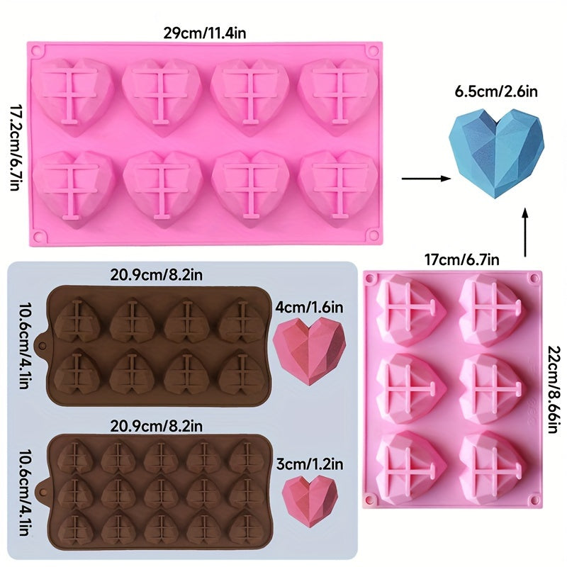 Silicone Baking Mold for 3D Diamond Heart-Shaped Desserts Cake Mousse Candy